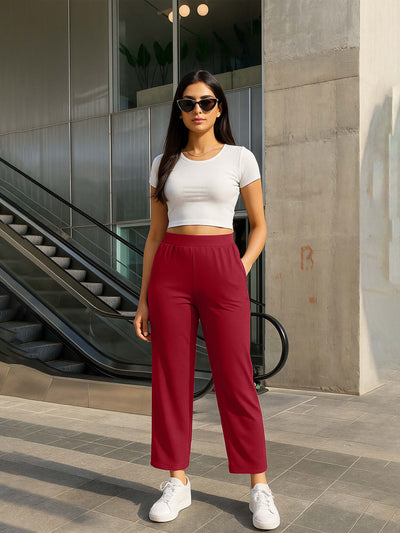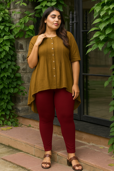 Dark Maroon Women's Ankle Length Stretchable Cotton Lycra Leggings