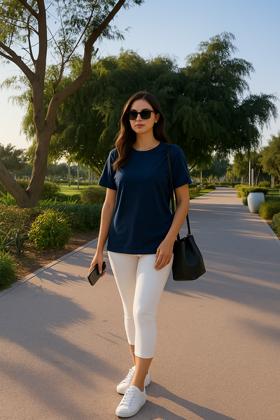 Navy Women's Ankle Length Stretchable Cotton Lycra Leggings