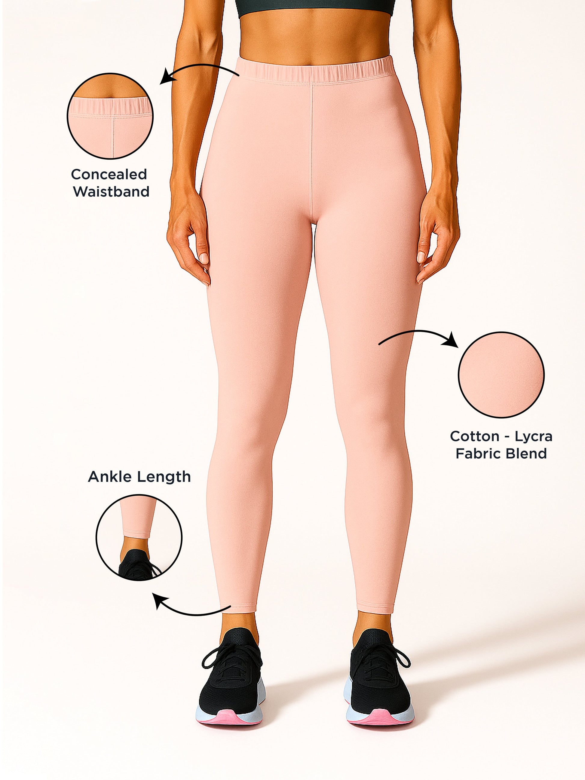 - Baby Pink leggings bring a youthful touch to your wardrobe, pairing effortlessly with florals, whites, and basics.