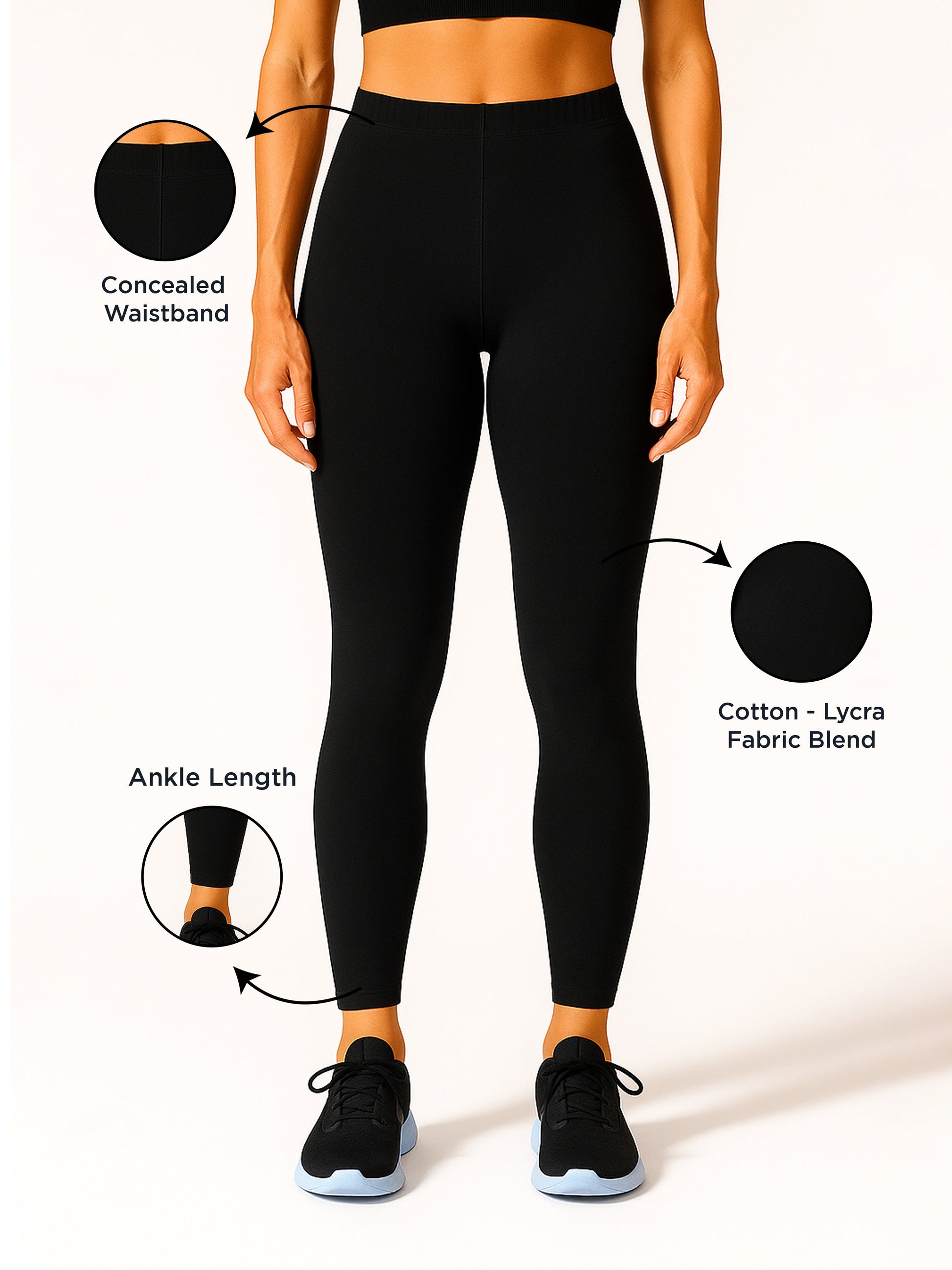 Black Women's Ankle Length Stretchable Cotton Lycra Leggings