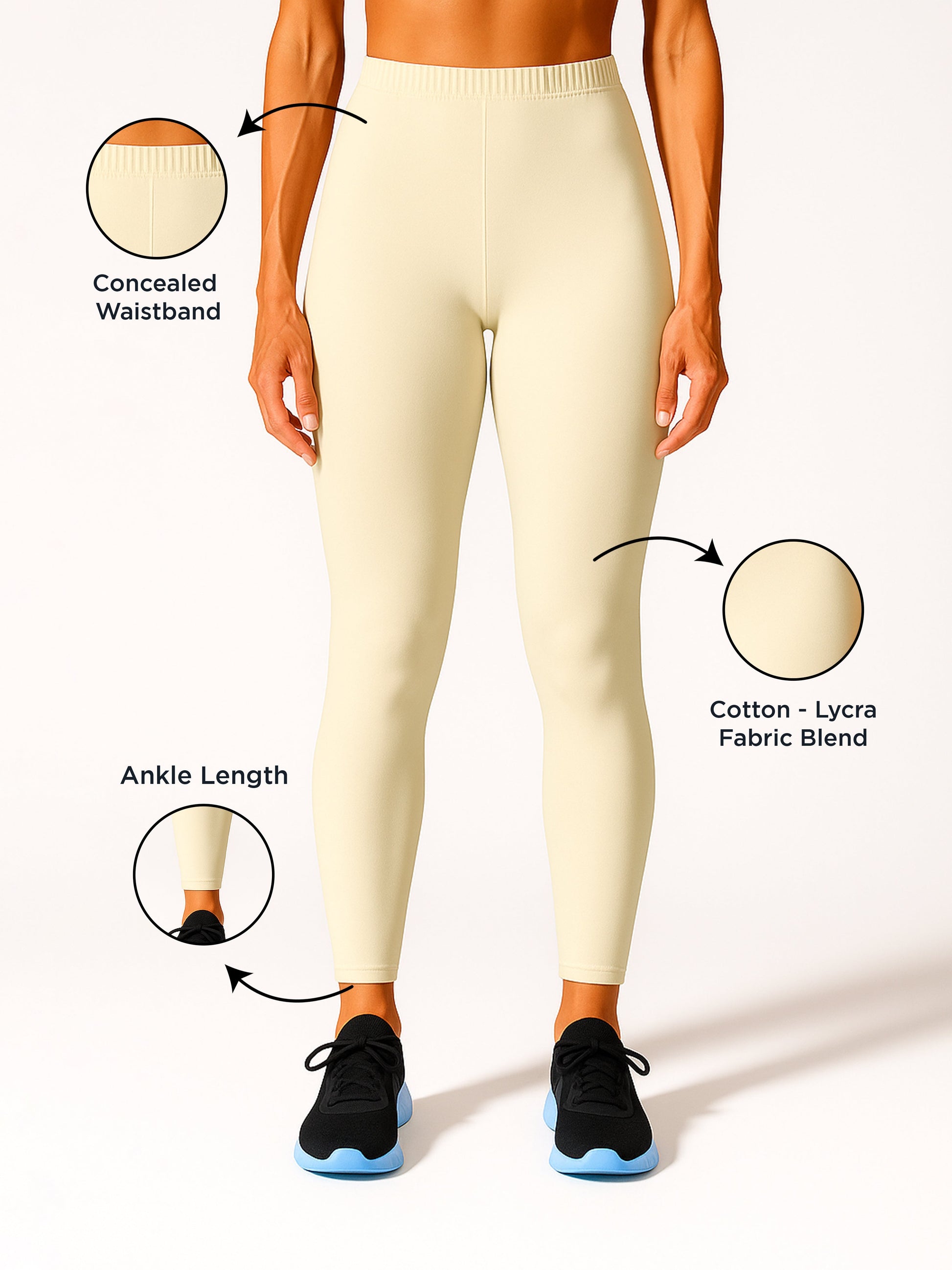 - Soft Butter-colored leggings offer warm, creamy tones, crafted with moisture-wicking cotton and lycra for breathable, comfortable all-day wear.