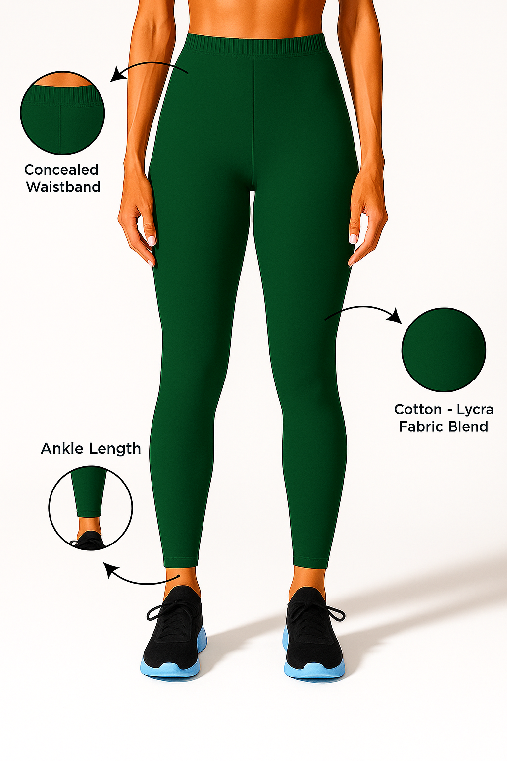 Cadmium Green Women's Ankle Length Stretchable Cotton Lycra Leggings