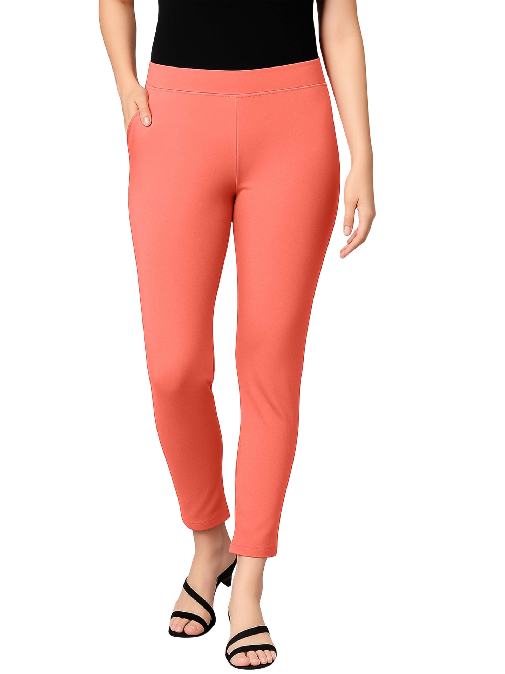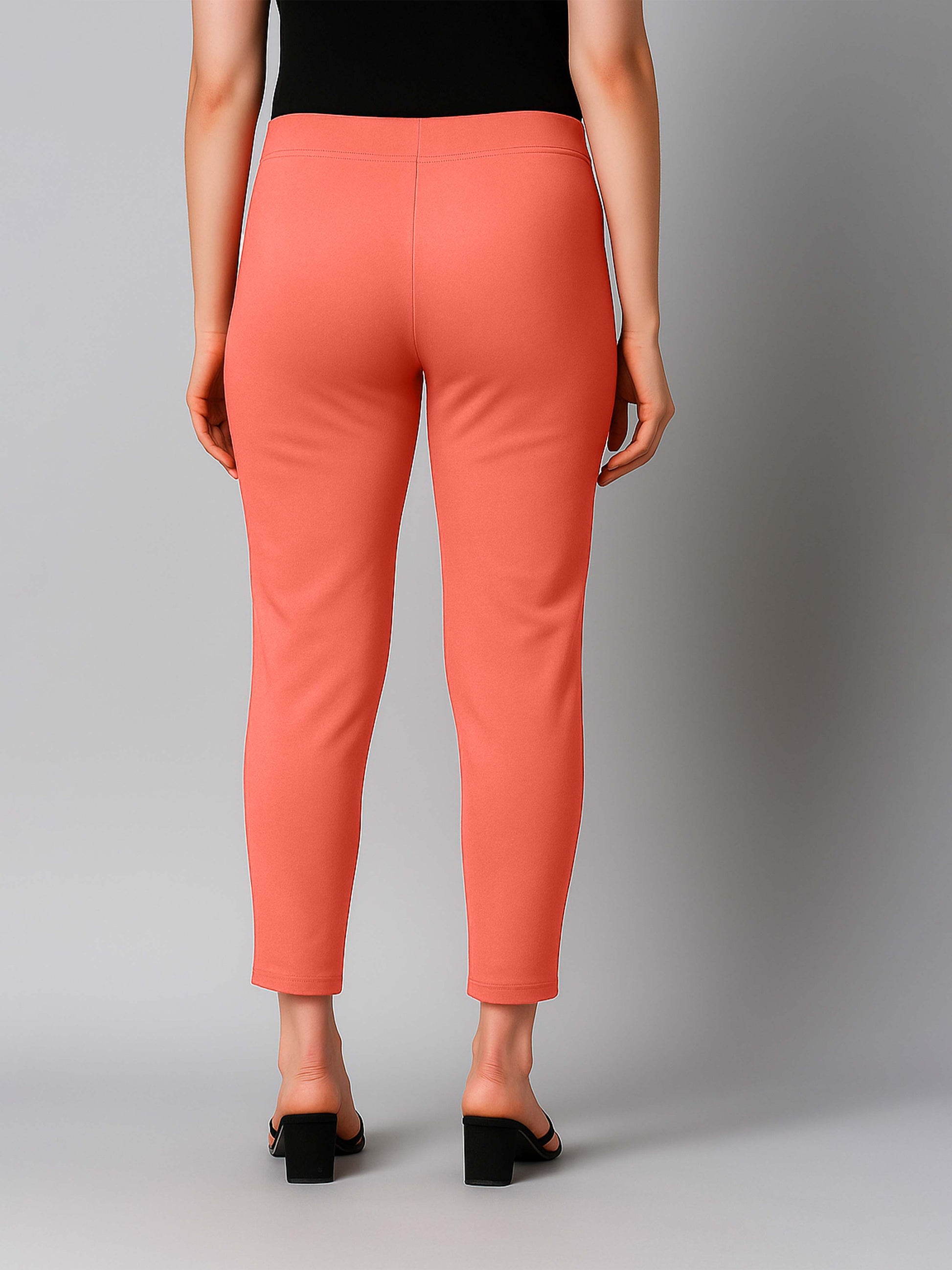 These coral solid straight pants offer a lively and elegant twist to everyday fashion. The warm pink-orange hue instantly brightens your look, making it a standout choice for spring and summer. Crafted from stretchable fabric, these pants provide comfort and a flattering silhouette that works for any occasion. The straight-leg fit delivers structure while allowing freedom of movement. Coral pairs beautifully with whites, beiges, or printed tops for a fresh and feminine ensemble. Whether you're headed to brunch, vacation, or a creative workspace, these pants add playful sophistication to your outfit. A cheerful, stylish option for those who love a bold but wearable color.