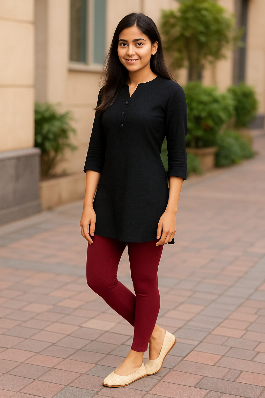 Turn up the drama with Crimson a bold, rich red that embodies power and passion. These ankle-length leggings are made from ultra-soft stretch fabric, designed to hug your body without restriction. Crimson adds a striking statement to your outfit, whether worn with a neutral tunic or a sleek black crop top. The fabric offers all-day breathability, while the wide waistband ensures a secure and flattering fit. Perfect for both casual days and dressier evenings, Crimson is the color of confidence and charisma. It's the ideal choice when you want your outfit to do the talking. Add this luxurious red to your collection and let your style speak volumes.