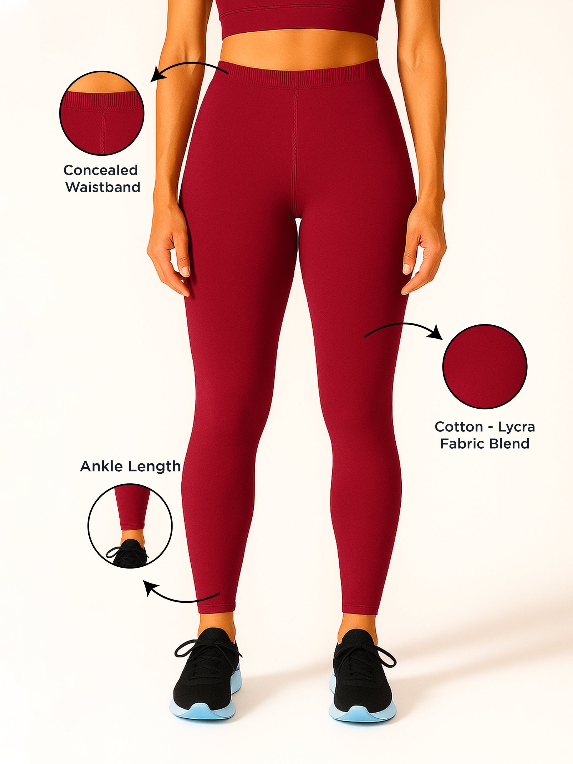 Crimson Women's Ankle Length Stretchable Cotton Lycra Leggings