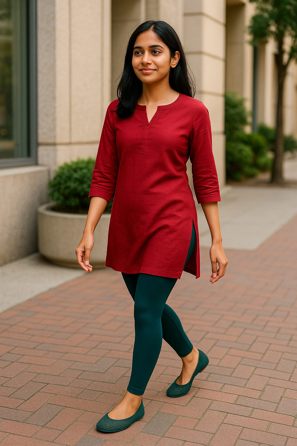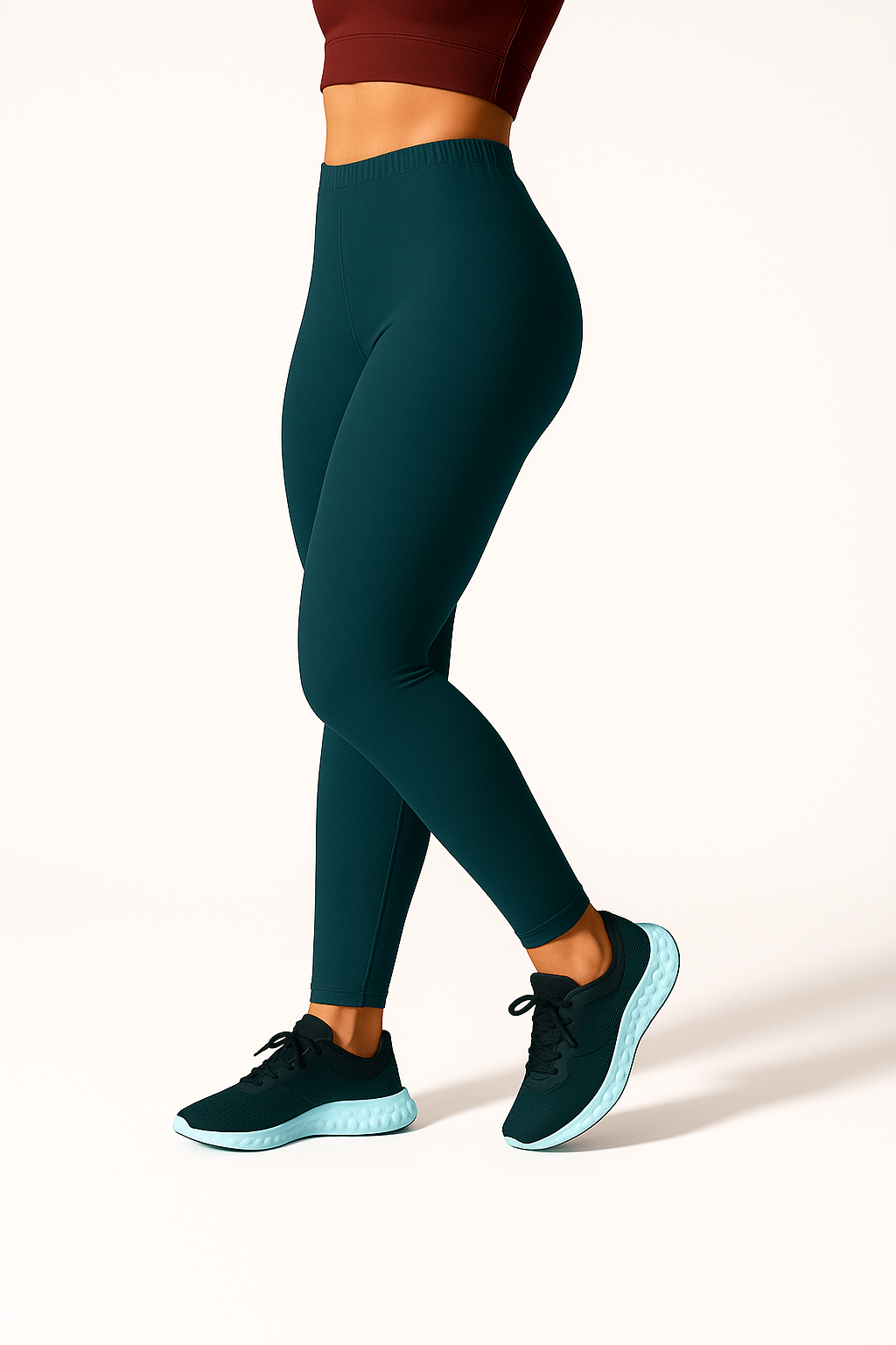 Dive into depth with D Teal An alluring dark teal hue that strikes the perfect balance between blue and green. These ankle-length leggings are crafted from a premium stretch blend that provides both flexibility and structure. D Teal adds richness to your wardrobe and looks stunning with whites, neutrals, or warm tones. The high-rise waistband ensures a sleek silhouette and stays in place, making them great for movement-heavy days or relaxed evenings. With their saturated color and luxurious feel, D Teal leggings offer a refined alternative to basic black. Elevate your casualwear with a color that feels bold yet timeless.