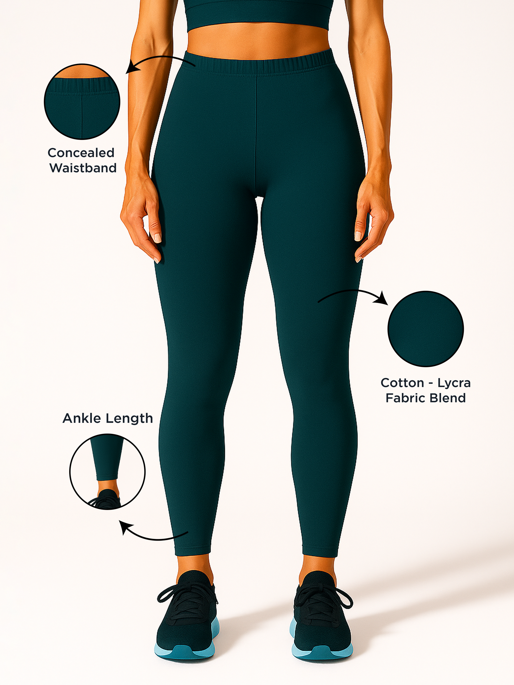 D Teal Women's Ankle Length Stretchable Cotton Lycra Leggings
