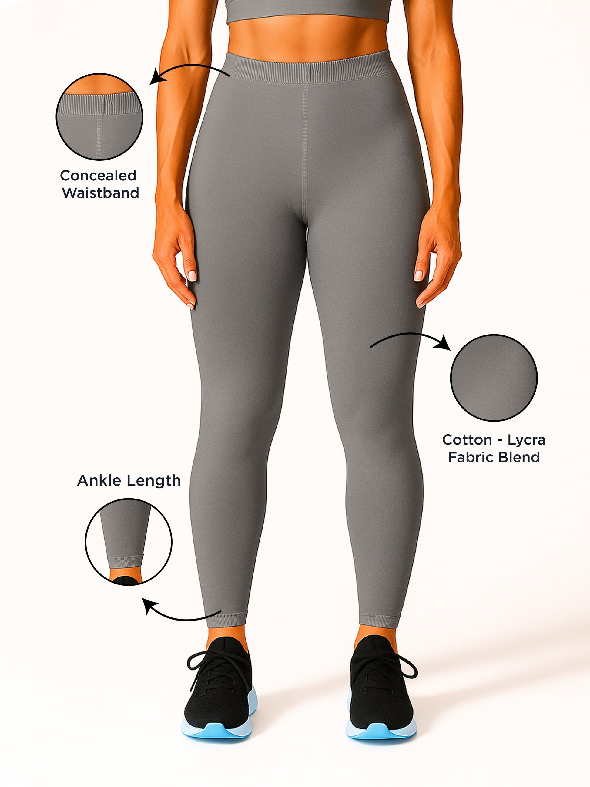 - Dapple Grey leggings bring misty elegance with a muted tone and sleek fit for modern movement.
