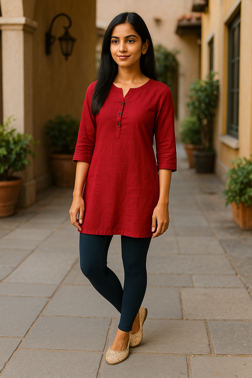 Classic and cool, Denim Blue Ankle-Length Leggings offer the timeless appeal of your favorite jeans with the comfort of stretch fabric. This versatile blue shade pairs effortlessly with casual and semi-formal looks alike. Crafted from breathable cotton with a lycra-plated interior, these leggings provide flexibility, moisture control, and all-day comfort. The smooth, fabric-covered waistband ensures a secure fit without irritation. Denim Blue works beautifully with whites, greys, and earthy tones, making it an essential piece for every wardrobe. Resistant to pilling and fading, these leggings hold their shape and color through frequent wear. Get the laid-back style of denim with the ease of leggings.