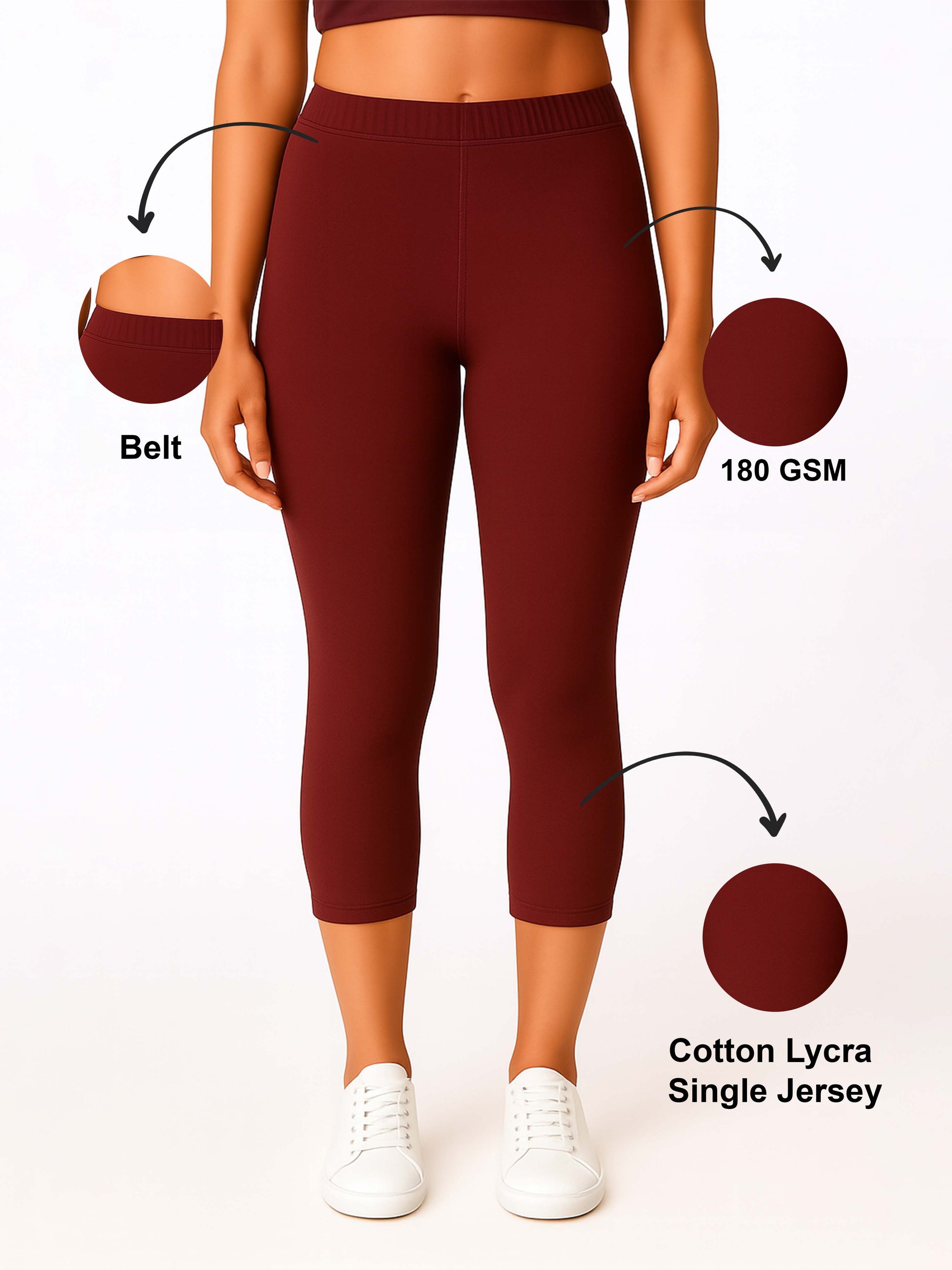 Refined and bold, the Wine Maroon Women’s Capri Low Jeggings bring elegance into everyday dressing. Designed with a low-rise waist and capri-length leg, they strike a balance between comfort and confidence. The deep maroon tone adds a rich twist to casual and semi-formal outfits. Crafted from soft stretch fabric, these jeggings provide breathable support without compromising style. Pair them with creams, blacks, or metallics for a look that works from day to evening with ease.