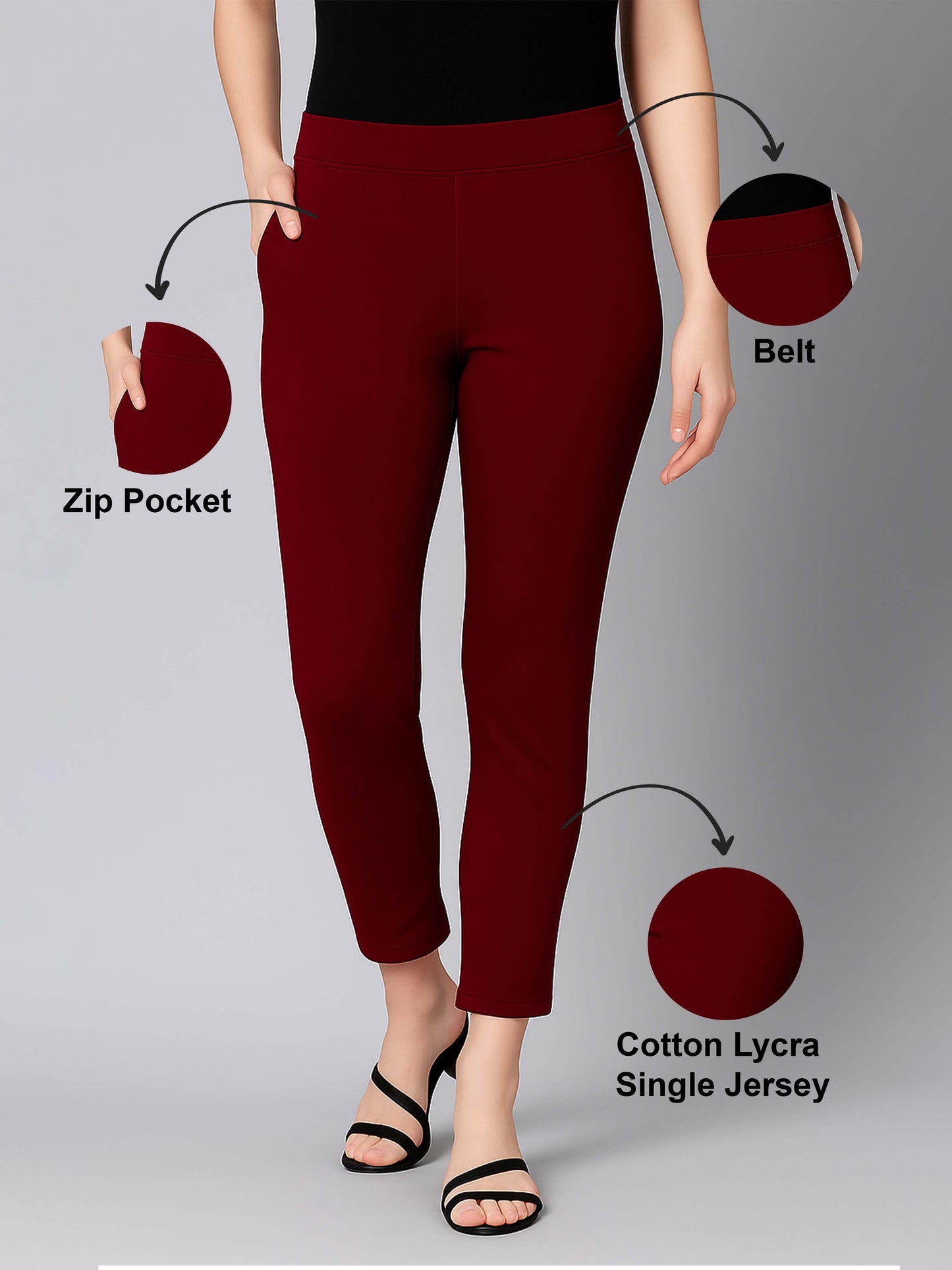Add richness to your look with these maroon solid straight pants. The deep, wine-inspired hue brings a sophisticated edge to both casual and dressy outfits. Crafted with soft stretch fabric, these pants move easily with your body while offering a structured, flattering shape. The straight-leg cut elongates the figure, making them a perfect match for tucked-in blouses or cropped knits. Maroon looks striking with neutrals, metallics, or warm earth tones, giving you plenty of styling possibilities. Ideal for workdays or weekend outings, these pants offer timeless appeal with a hint of drama. Elevate your everyday essentials with this deep, moody color that combines elegance with modern edge.