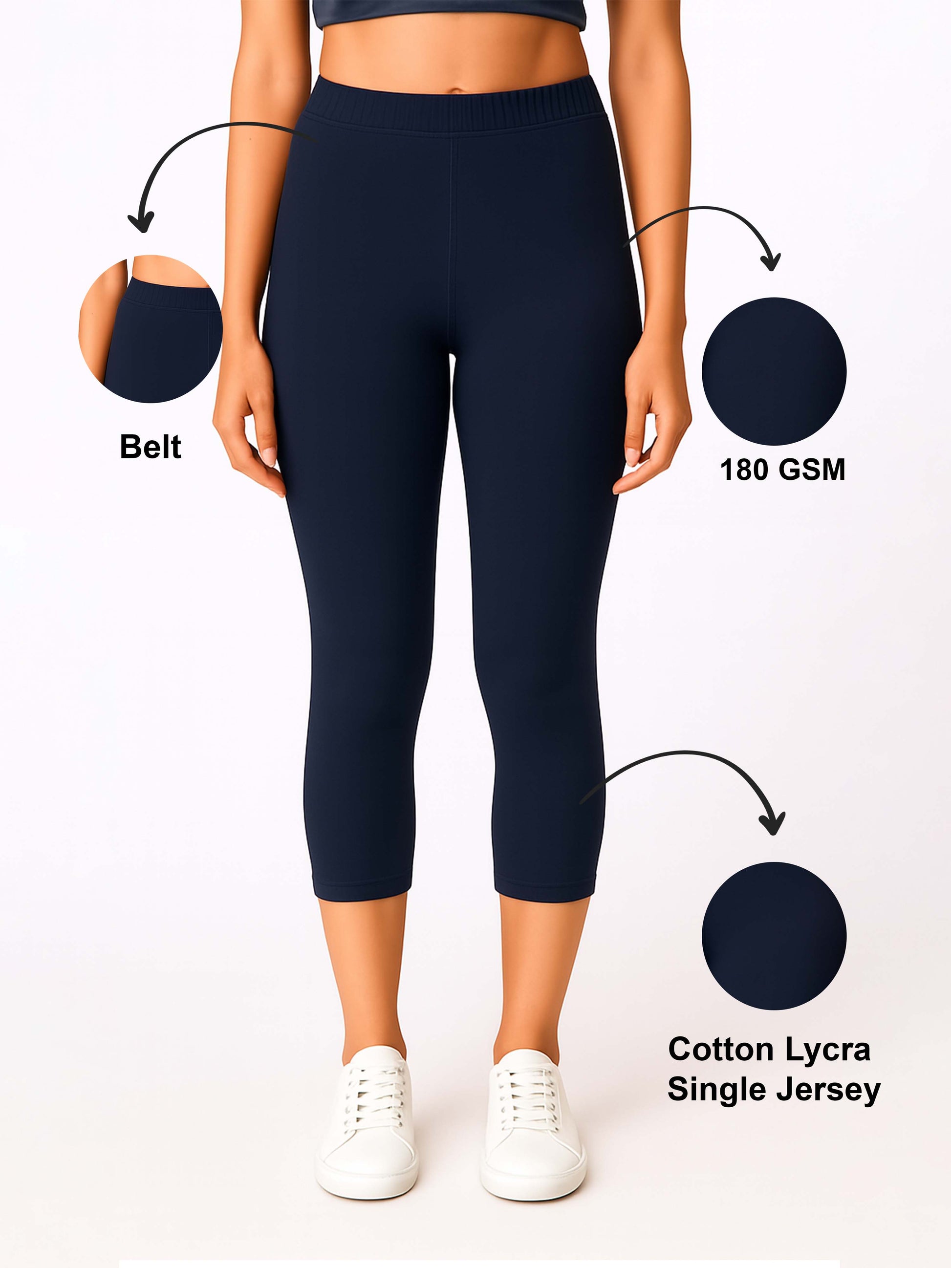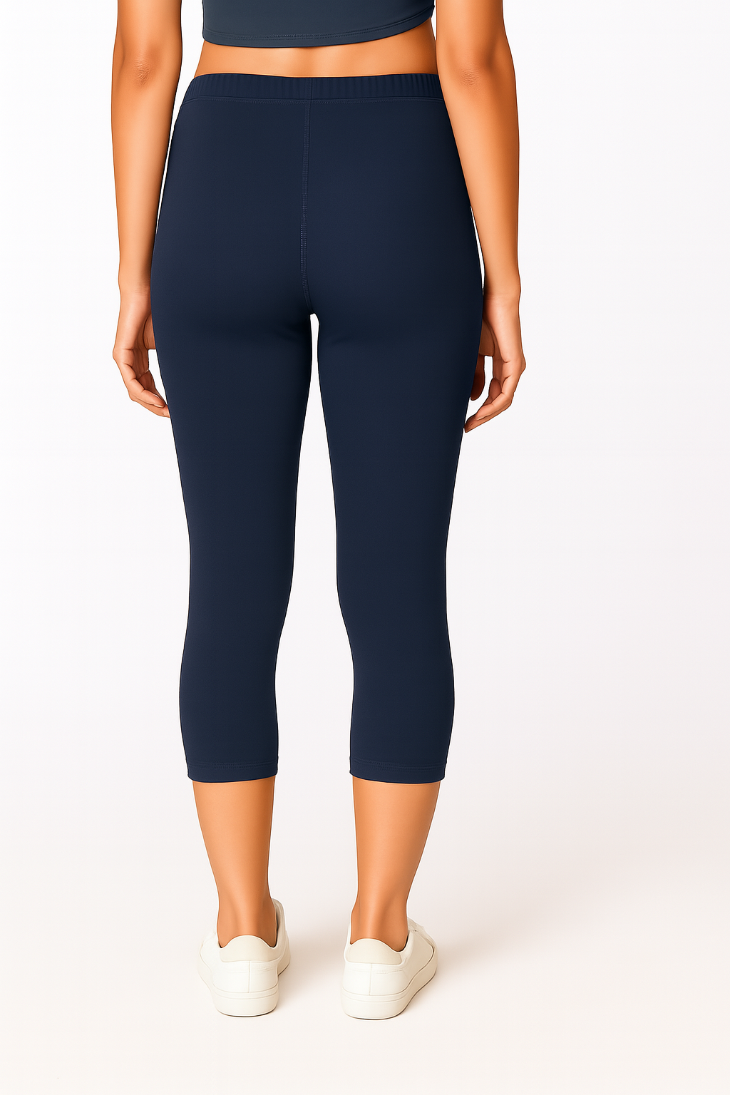 The Deep Navy Blue Women’s Capri Low Jeggings are a timeless staple for smart-casual wardrobes. Featuring a low-rise waist and capri cut, they offer breathable ease with a tailored look. The deep navy shade pairs effortlessly with both prints and solids, making it suitable for everything from office-ready fits to relaxed weekend styling. With stretch-blend fabric and a sleek silhouette, these jeggings ensure comfort, flexibility, and a polished finish—no matter the occasion.