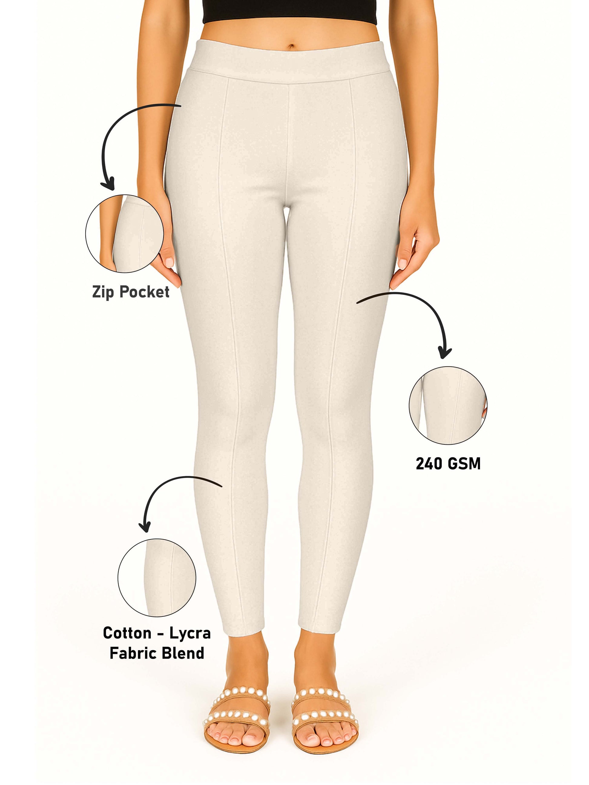 Understated and graceful, the Off White Solid Pleated Pant offers a refined take on classic neutrals. The soft, creamy shade brings warmth to the traditional white, making it ideal for year-round styling. Designed with front pleats and crafted from breathable stretch fabric, it provides comfort without compromising structure. Style it with jewel tones, prints, or soft pastels for a clean and balanced outfit. Whether you're attending a luncheon or a casual Friday at work, this versatile piece adds subtle sophistication. Light, elegant, and endlessly adaptable—this pant is a must-have for every modern wardrobe.