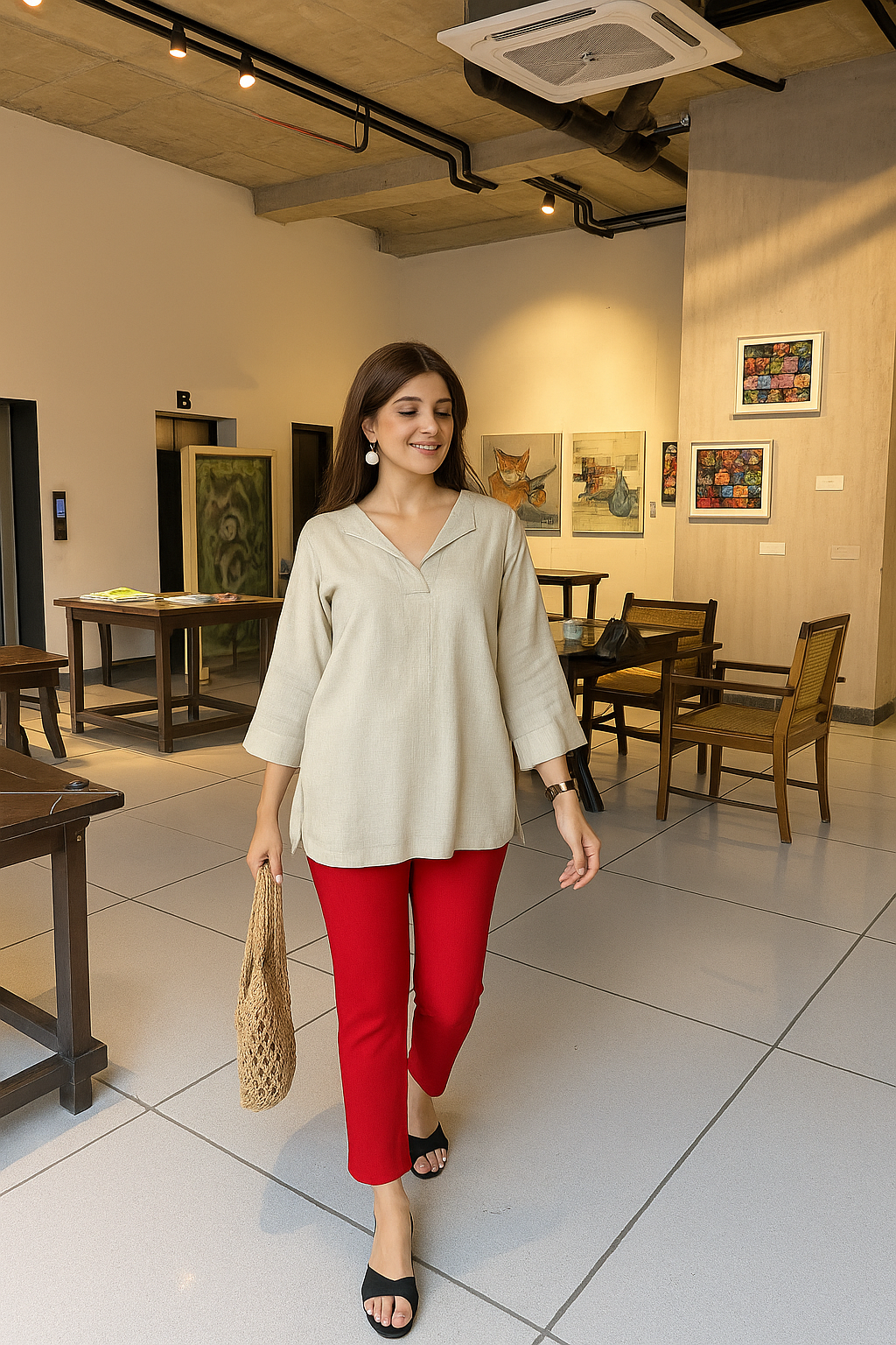 - Pairs beautifully with neutrals, blacks, and printed tops.