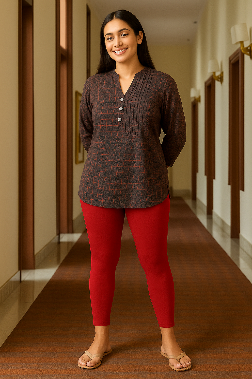 Classic and romantic, Rose is the perfect soft pink hue for a touch of timeless femininity. These ankle-length leggings are made from ultra-comfy stretch fabric that hugs your body for a graceful, flattering fit. Rose blends beautifully with light greys, whites, or deeper shades for a layered, elegant look. The leggings are ideal for daily wear, yoga sessions, or casual outings. A wide waistband ensures all-day support and a smooth silhouette. With its delicate tone and comfortable fit, Rose brings balance and beauty to your wardrobe. It's the kind of soft, pretty color that feels gentle yet refined, day after day.