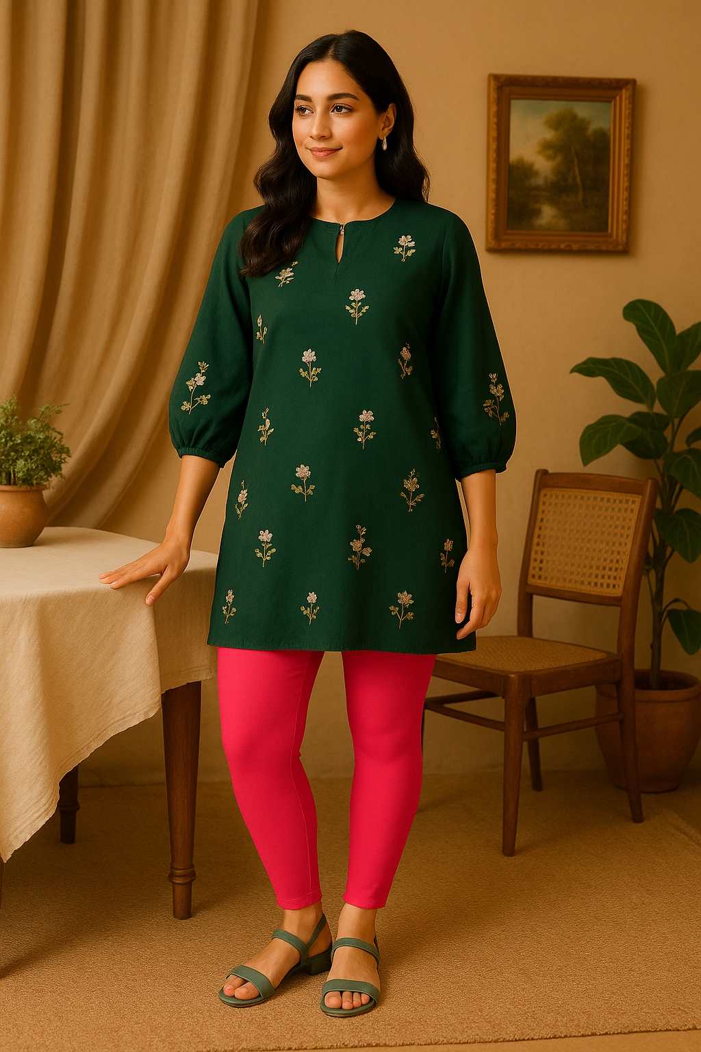 Soft, romantic, and subtly charming Rosebud Ankle-Length Leggings are the perfect blend of grace and comfort. This light rose hue adds a gentle femininity to your wardrobe, ideal for everyday wear or dressed-up casual looks. Crafted with a cotton-rich outer and lycra-blended inner, these leggings offer breathable stretch and moisture-wicking ease. The smooth waistband keeps the fit seamless and secure, while the anti-pilling finish maintains long-term quality. Pair Rosebud with whites, greys, or soft blues for an airy, romantic ensemble. From lounging to light outings, these leggings wrap you in delicate charm and day-long comfort.