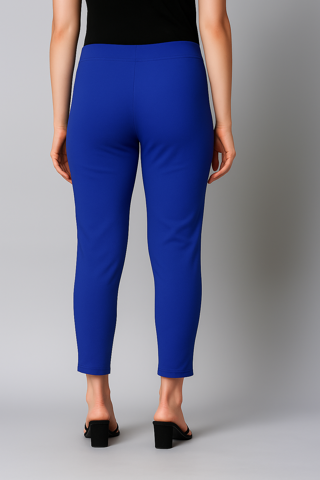 Bold and regal, these royal blue solid straight pants make a confident fashion statement. The rich jewel tone adds a vibrant touch of luxury to any outfit. Made from high-quality stretchable fabric, they offer excellent comfort and a sleek silhouette. The straight-leg design gives structure and sophistication, perfect for office attire or dressy casual events. Royal blue pairs stunningly with whites, blacks, and metallics for a high-impact look. Whether you're dressing for a presentation or a night out, these pants make you feel poised and polished. A powerful color that turns heads, royal blue is a must-have for confident dressers.