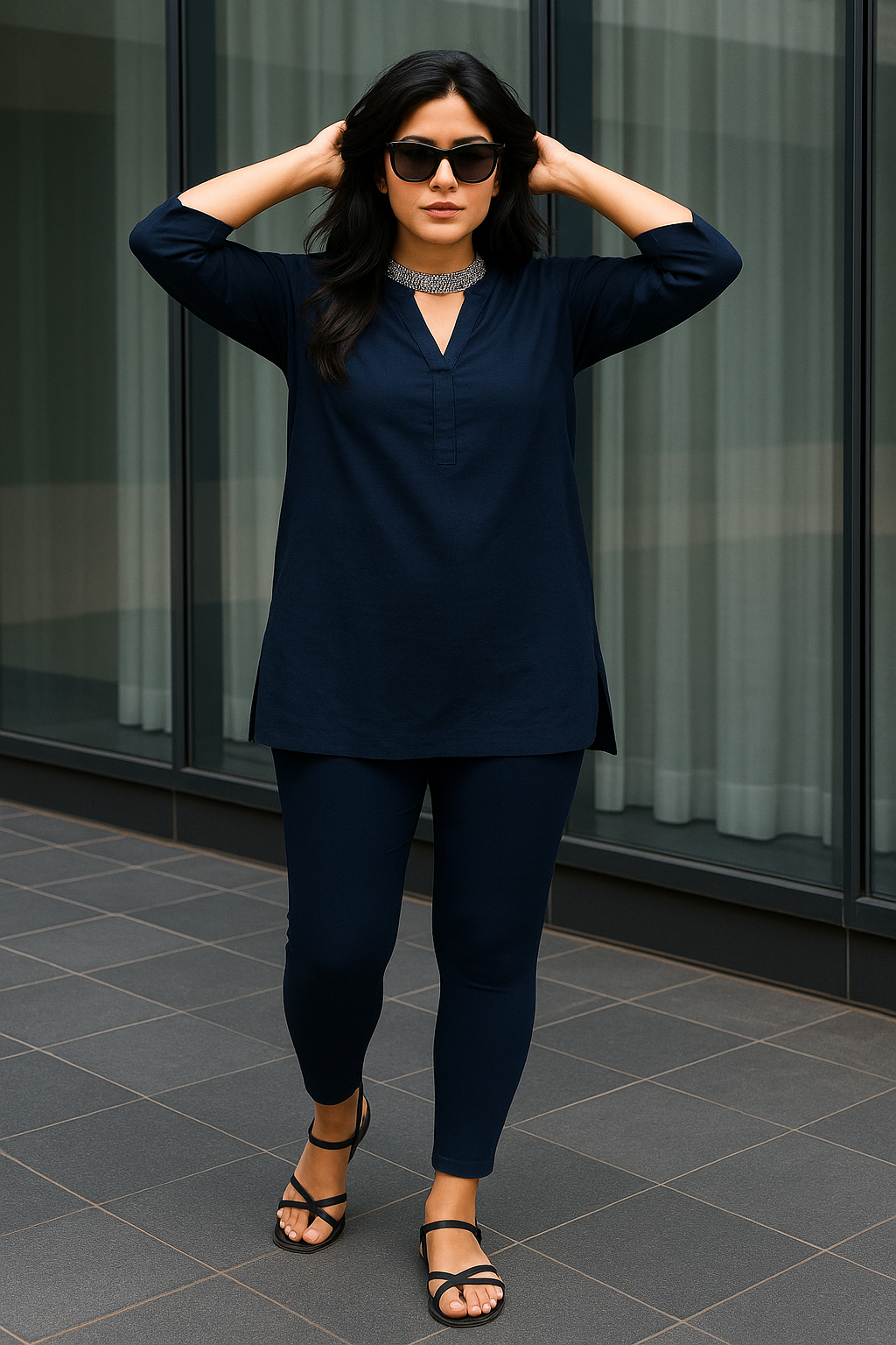 Channel futuristic flair with Space Cadet deep, cosmic blue that evokes sophistication and a touch of mystery. These ankle-length leggings are made from high-performance stretch fabric, designed to move with your body while keeping you comfortable and confident. The color strikes the perfect balance between navy and indigo, pairing well with crisp whites, greys, or metallics. Space Cadet is ideal for the modern minimalist who wants something bold yet wearable. Whether you're running errands or working out, these leggings support every step with a smooth waistband and breathable material. Add Space Cadet to your rotation for a versatile, sleek, and stylish upgrade to your basics.