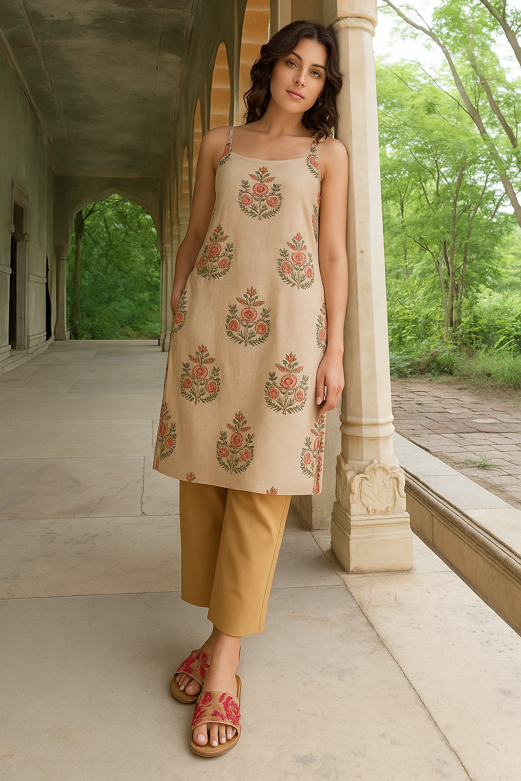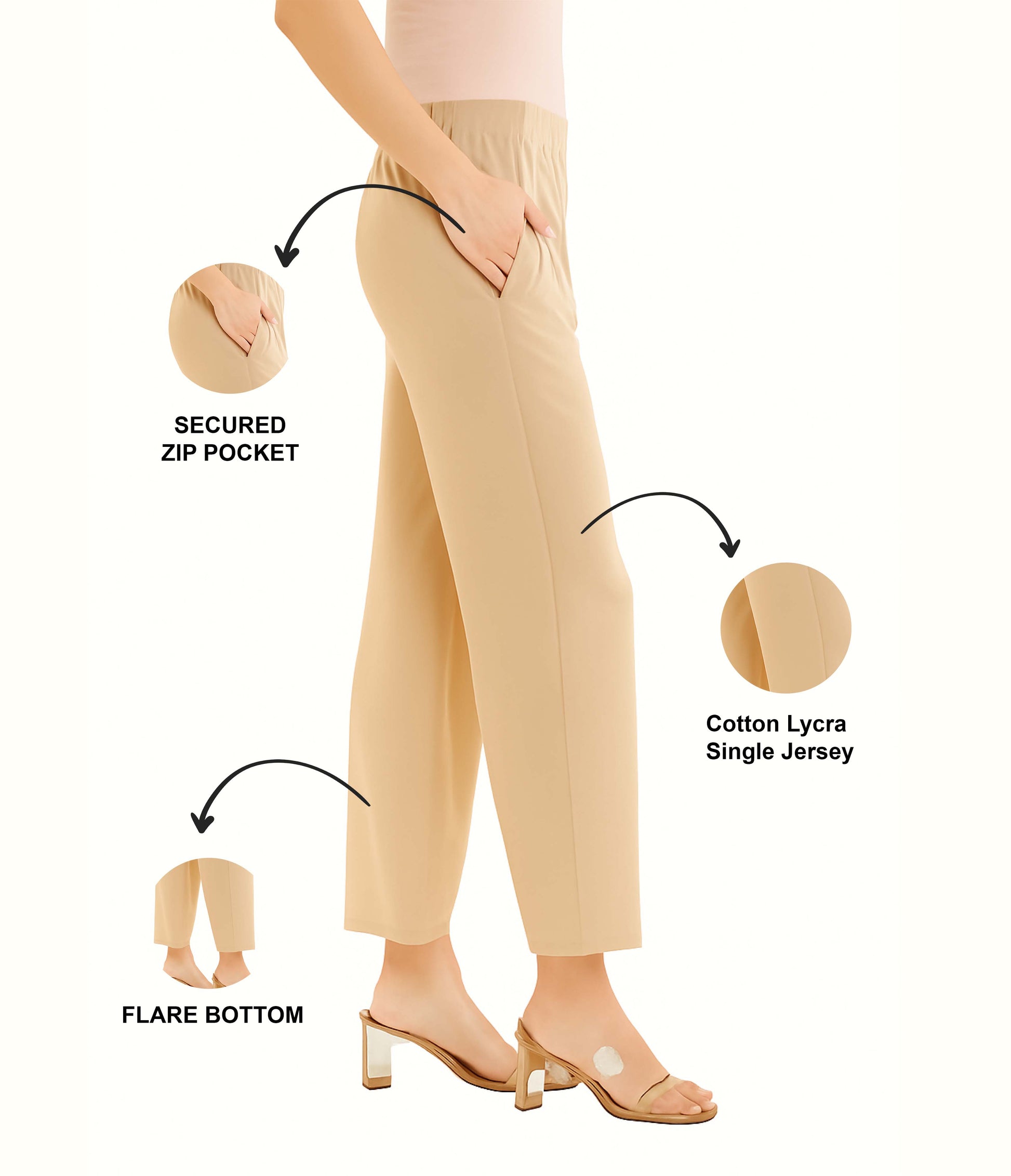 Balance elegance and comfort with the Women's Regular Fit Beige Flare Kurti Pant. Crafted for graceful movement, its light fabric and flared leg create a silhouette that flows naturally. The neutral beige shade allows effortless pairing with printed, embroidered, or bold-colored kurtas. Whether you're dressing up for a formal gathering or keeping it simple for daytime wear, this pant offers a refined look that works across seasons. Its mid-rise waist ensures a comfortable fit, while the airy design enhances traditional styling with subtle sophistication.