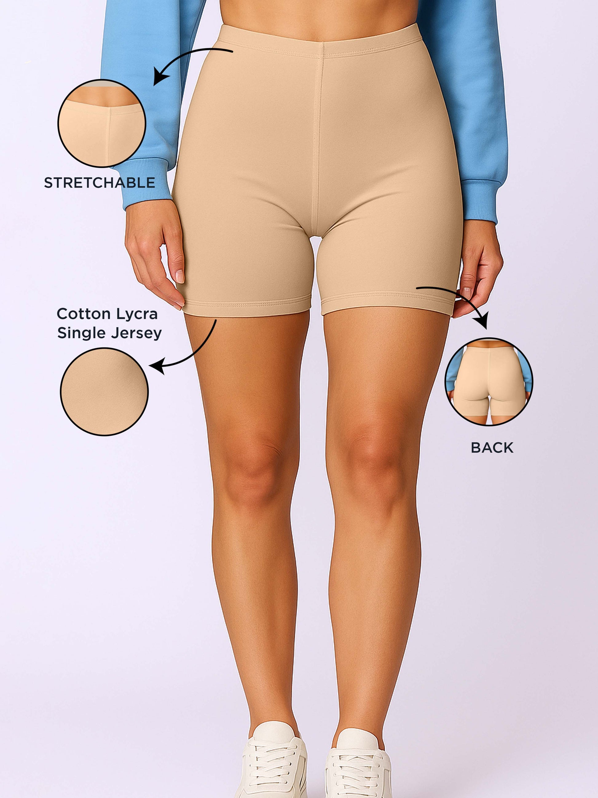 Soft, minimal, and endlessly wearable these Solid Slim Fit Beige Cycling Shorts bring luxe vibes to your fitness wardrobe. Designed to contour the body while offering breathable flexibility, they make movement effortless and stylish. The subtle beige hue blends easily with earthy tones or monochromes, perfect for studio workouts or relaxed weekend errands. With their high-rise silhouette and ultra-smooth finish, these shorts strike the ideal balance between function and fashion.