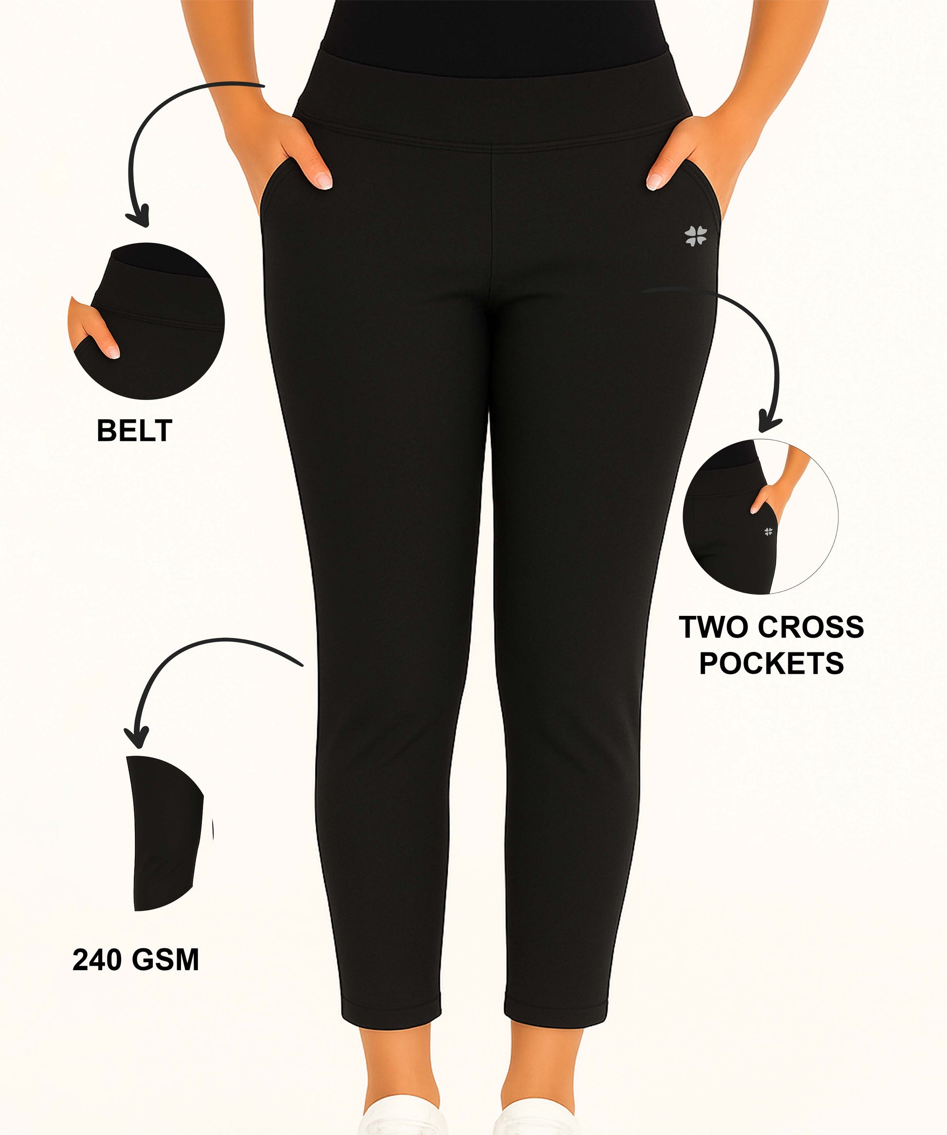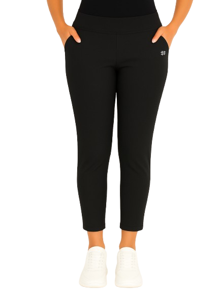 A must-have in every wardrobe, the black solid elasticated lounger pant offers unmatched versatility and comfort. Made from soft, breathable fabric, it’s designed for all-day wear, whether you're lounging at home or running errands. The elasticated waistband ensures a snug yet flexible fit, while the relaxed silhouette adds to your ease. Dress it up with a chic top or keep it casual with a tee. This pant adapts to your style. Its deep black color pairs effortlessly with anything, making it a timeless essential. Elevate your everyday look with this classic and dependable choice in women's loungewear.