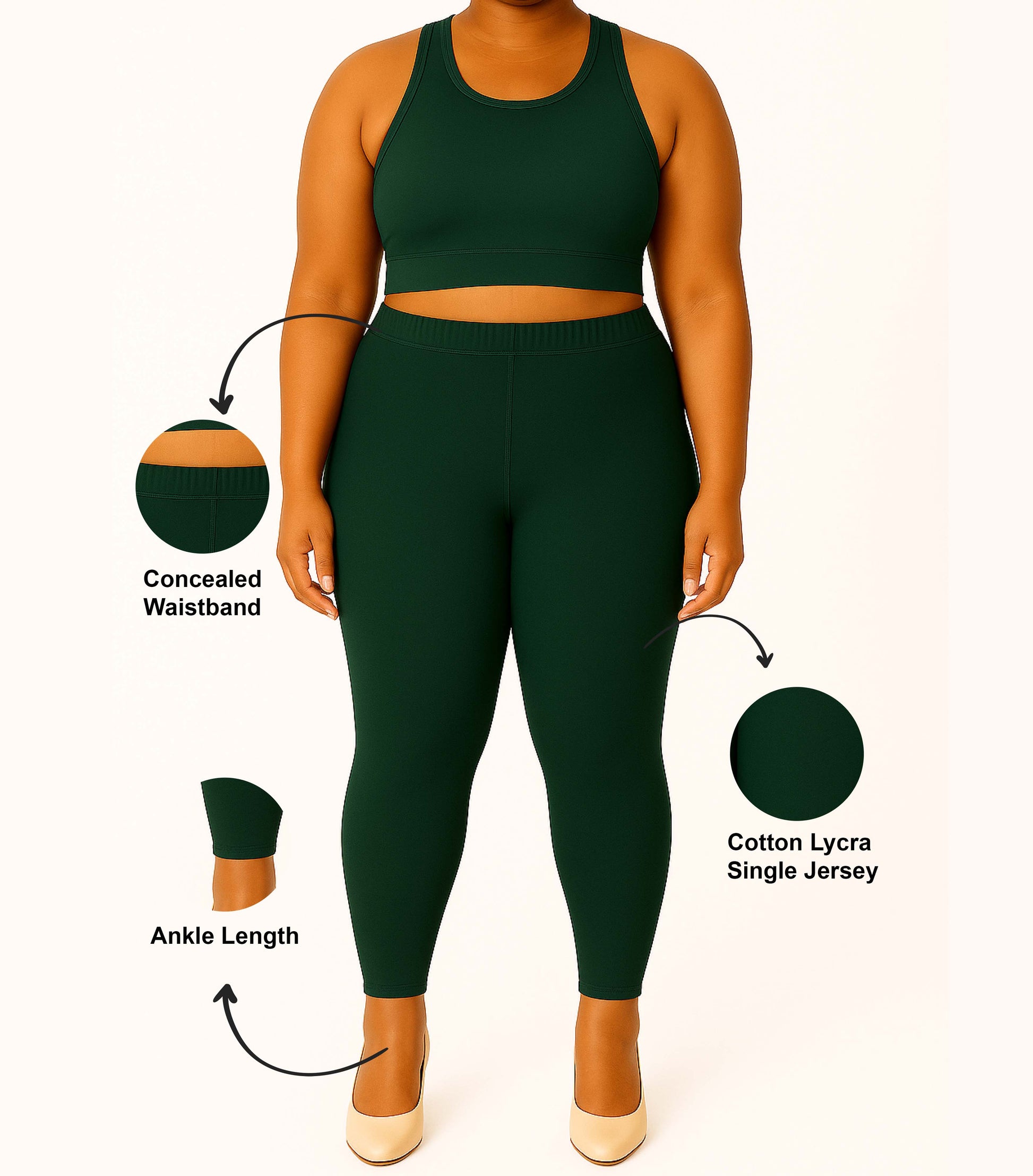 Bottle Green Women's Ankle Length Plus Size Stretchable Cotton Lycra Leggings
