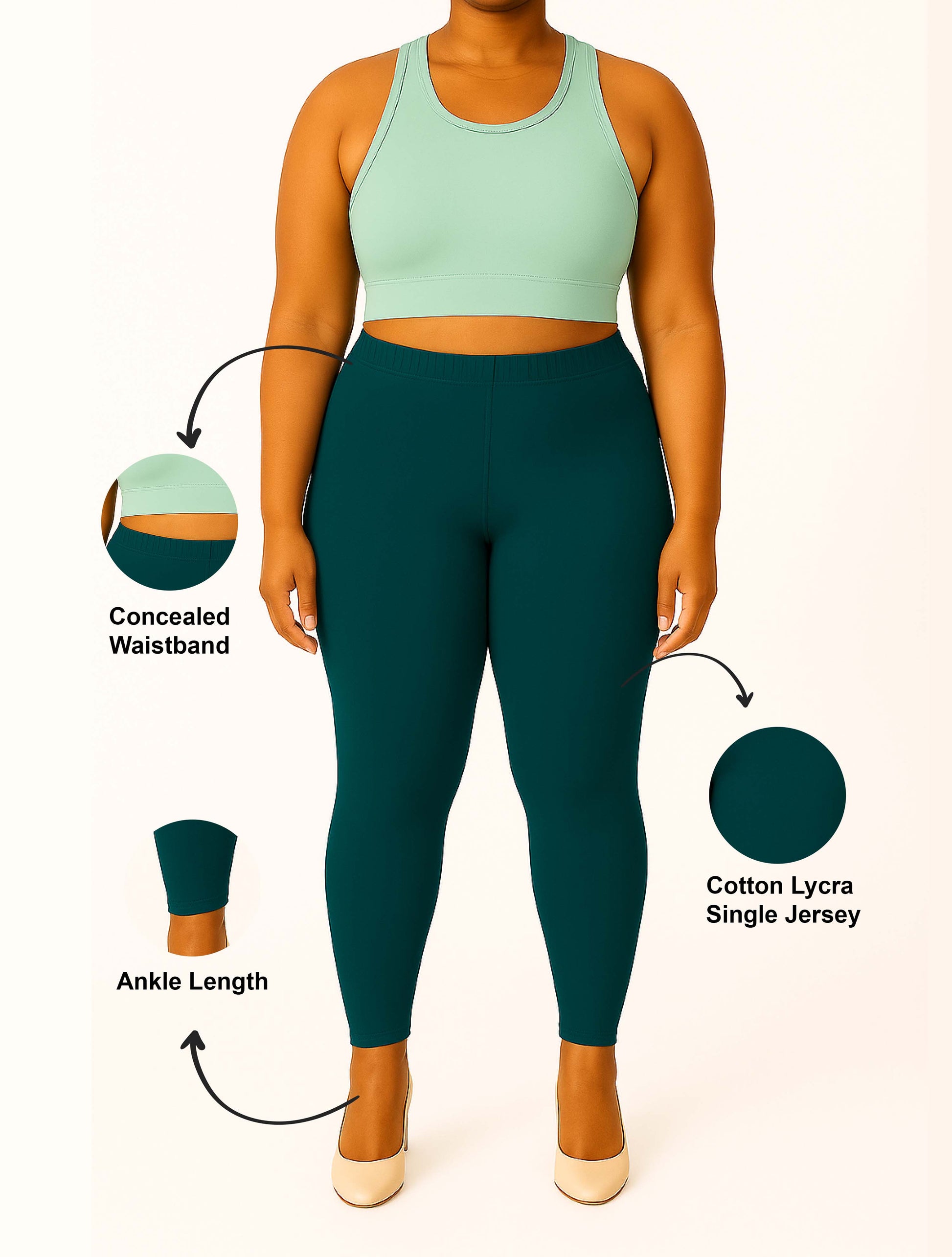 D-Teal Women's Ankle Length Plus Size Stretchable Cotton Lycra Leggings
