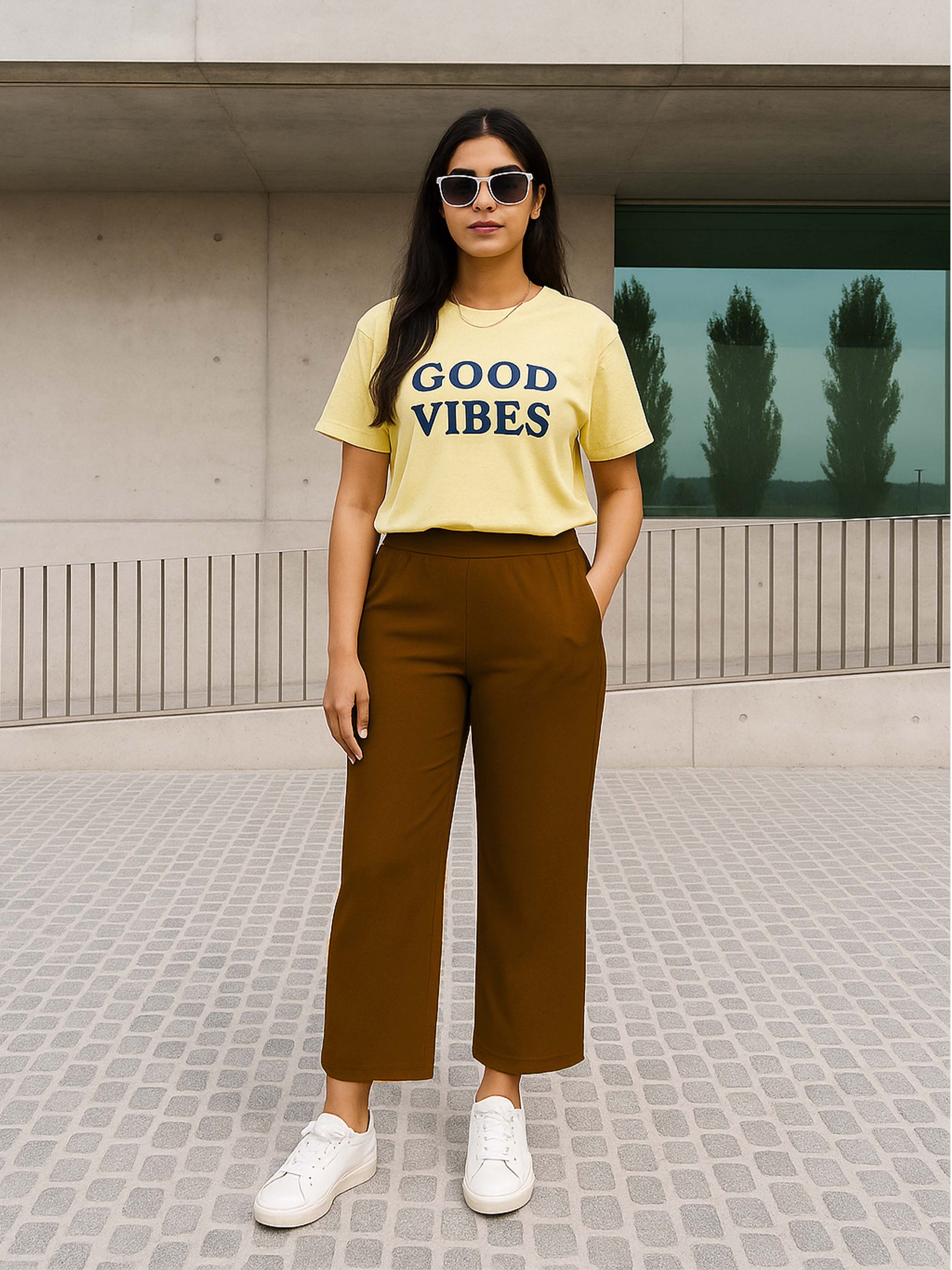 Step into effortless ease with the Women's Solid Dark Beige Relax Fit Pant. Made from a lightweight textured weave, it features a smooth, flowy profile that feels effortless throughout the day. The solid dark beige shade is pairs beautifully with bright tones or tonal layers. It’s great for workdays, casual dinners, or home lounging. A quietly confident addition to your rotation.
