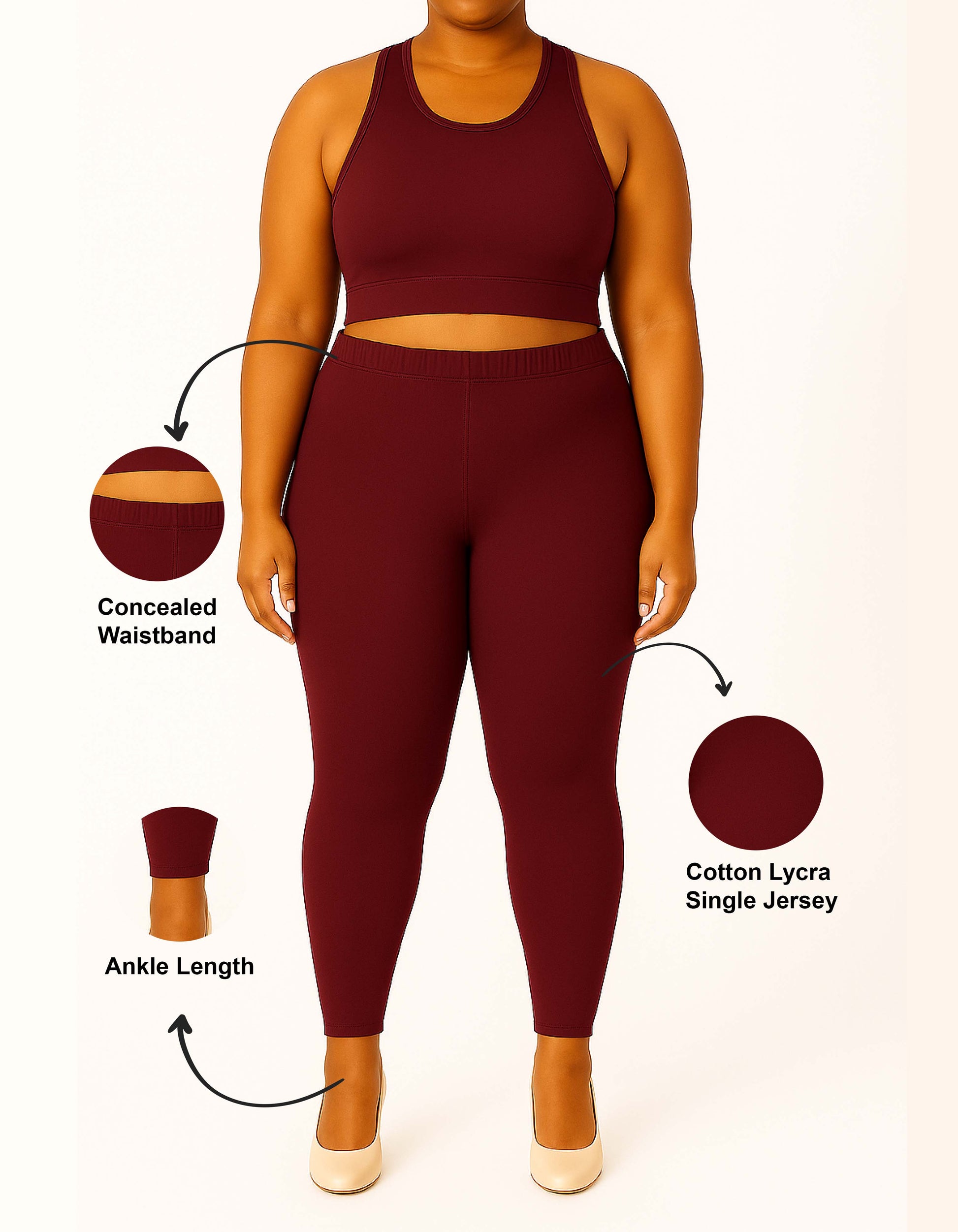 Dark Maroon Women's Ankle Length Plus Size Stretchable Cotton Lycra Leggings