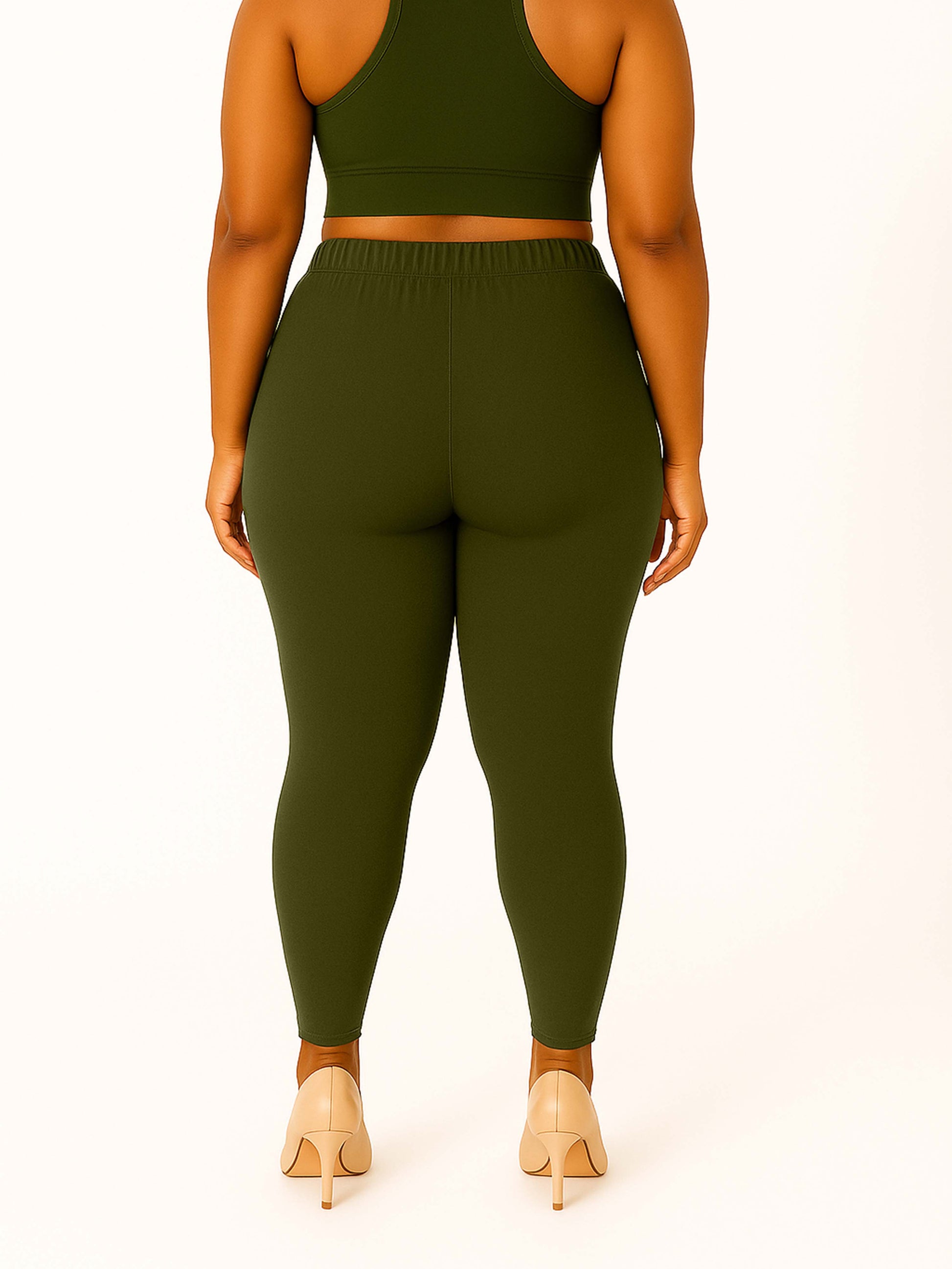 Embrace earthy elegance with these Dark Mehendi ankle-length leggings. Made from stretchable fabric, these leggings provide a comfortable and flattering fit, perfectly sculpting your body. The deep, rich mehendi color brings an organic and grounded touch to your outfit, making them perfect for both casual and semi-formal occasions. Pair with a variety of tops to create a stylish ensemble that is as versatile as it is comfortable. These leggings are a timeless choice, bringing both style and comfort to any wardrobe.