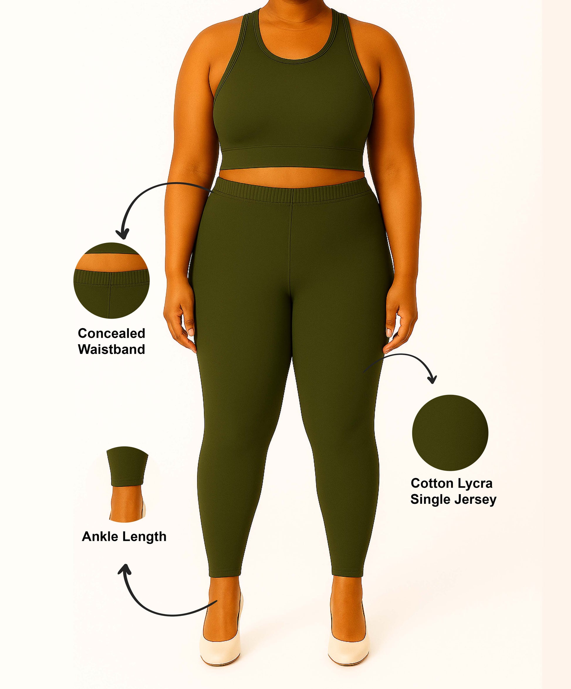 Dark Mehendi Women's Ankle Length Plus Size Stretchable Cotton Lycra Leggings