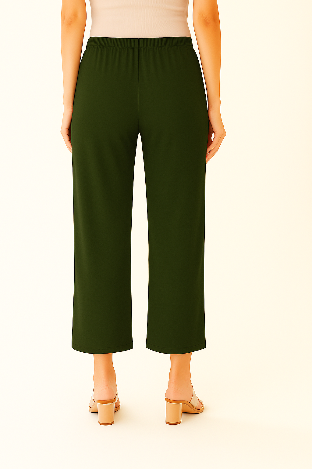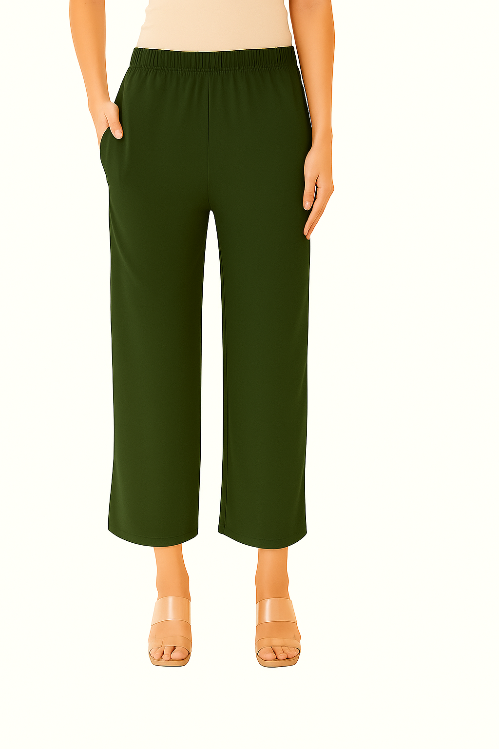 The Women's Regular Fit Dark Olive Flare Kurti Pant is both earthy and elevated, perfect for transitional ethnic styling. Its muted green tone adds depth to lighter kurtas while maintaining a natural, grounded look. The flared hem and mid-rise fit ensure comfort and motion for everyday wear or special gatherings. Whether styled with creams or rust tones, this piece adapts to both tradition and trend.