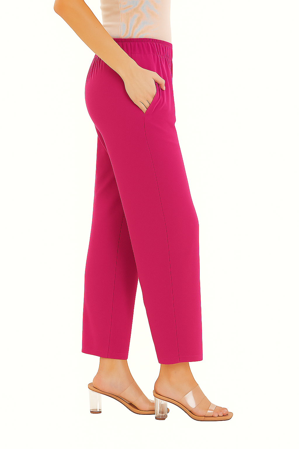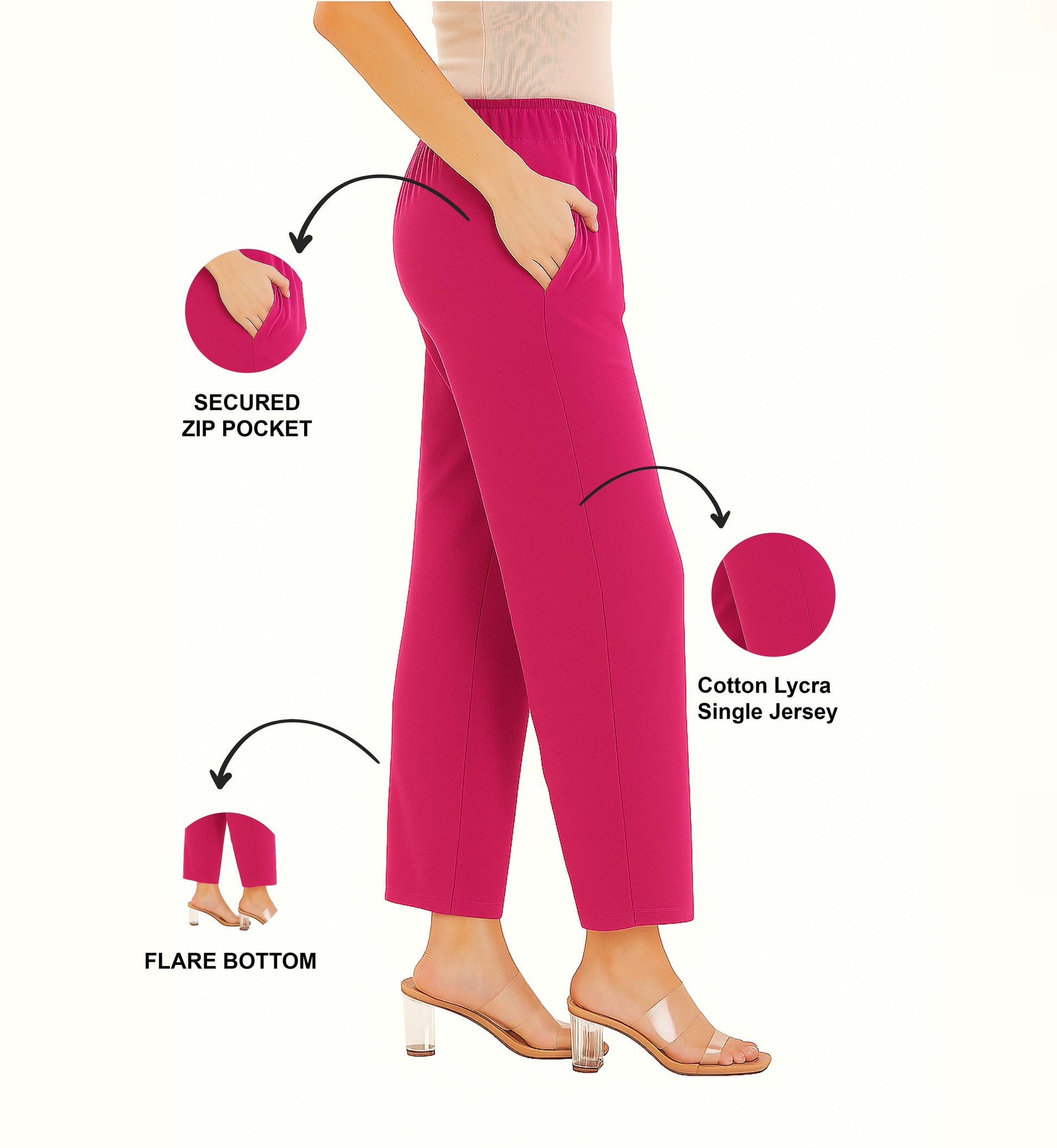 Bring your outfit to life with the Women's Regular Fit Fuchsia Flare Kurti Pant. Bold and energetic, the fuchsia hue adds vibrancy to any ensemble. Crafted with breathable material and a flowing cut, it ensures you stay comfortable and stylish all day. Whether paired with neutrals or equally bold tops, it brings joyful energy to festive mornings or casual evenings. With a tailored fit at the waist and volume through the leg, it delivers flair without compromising comfort.