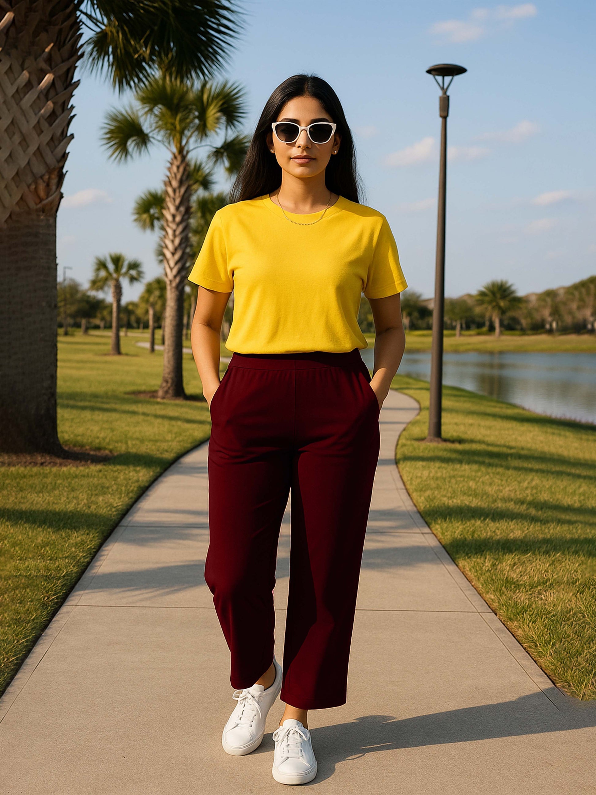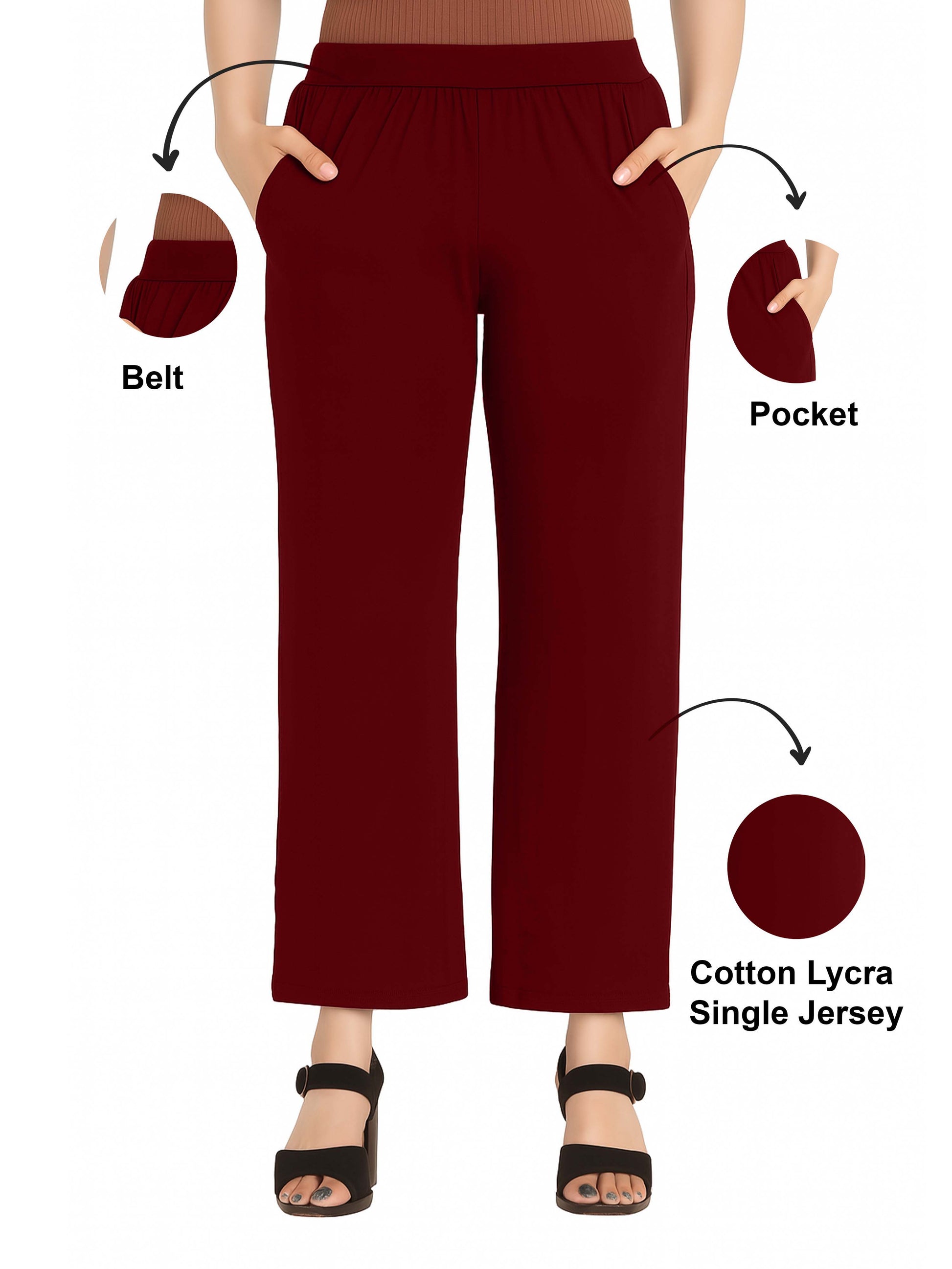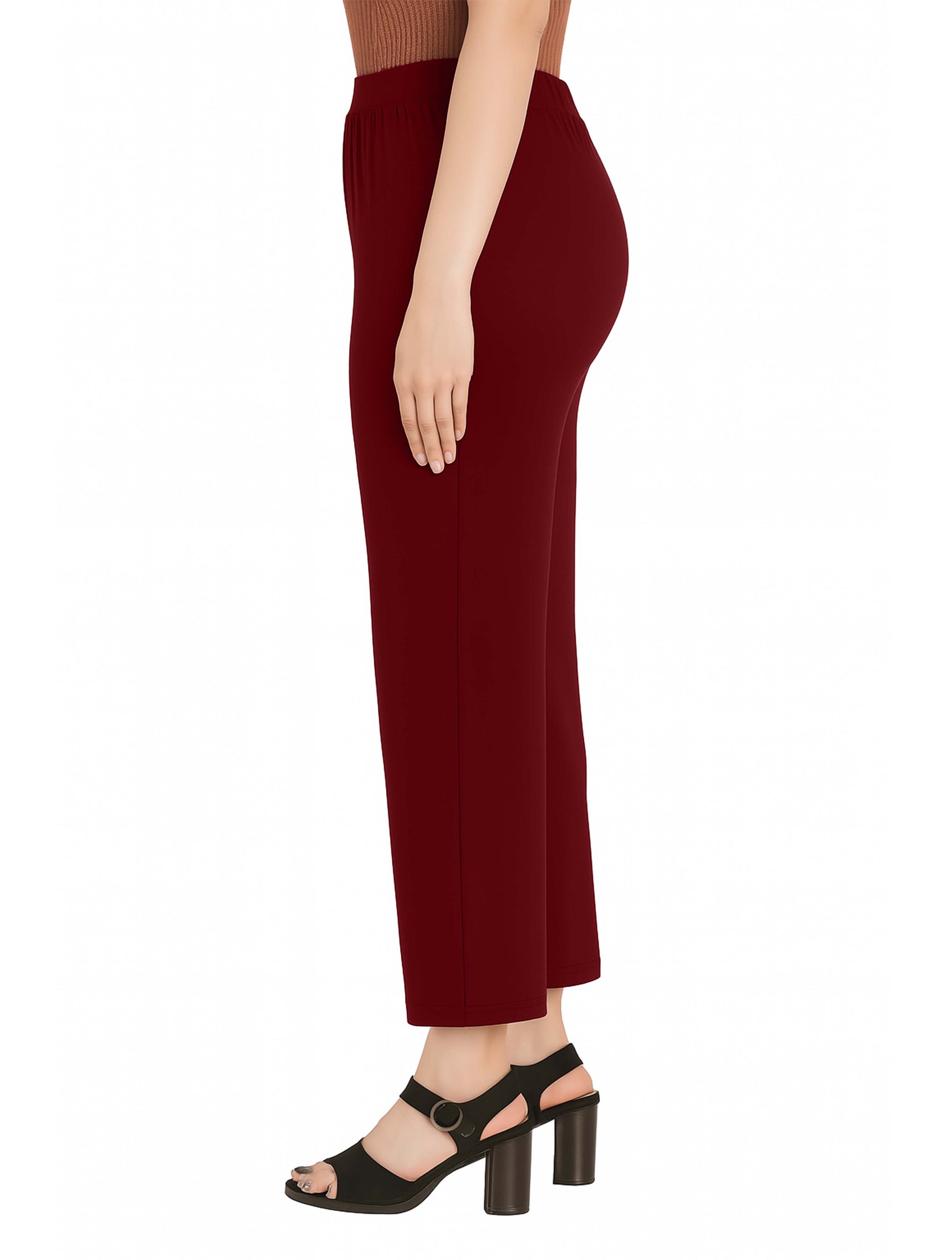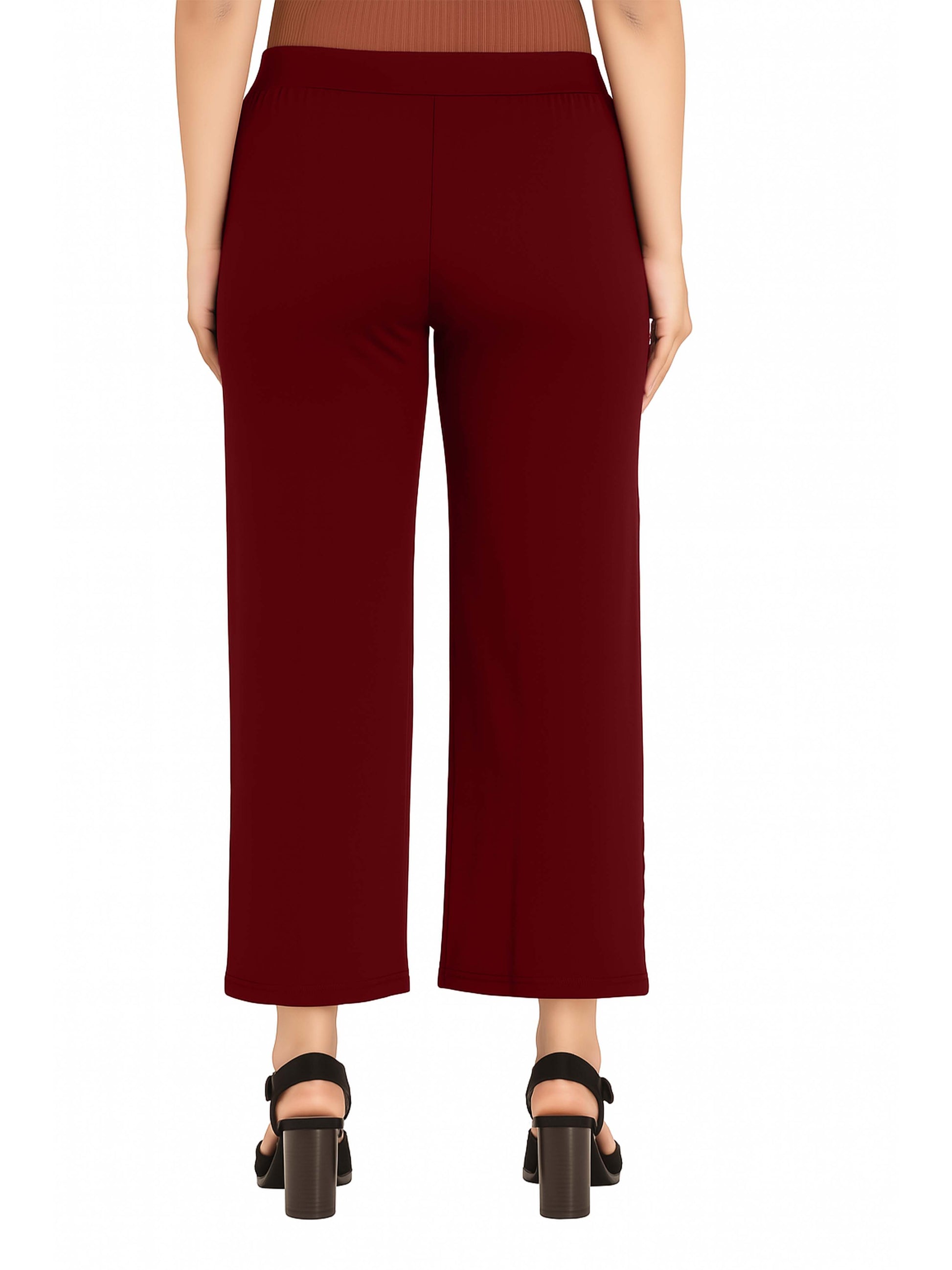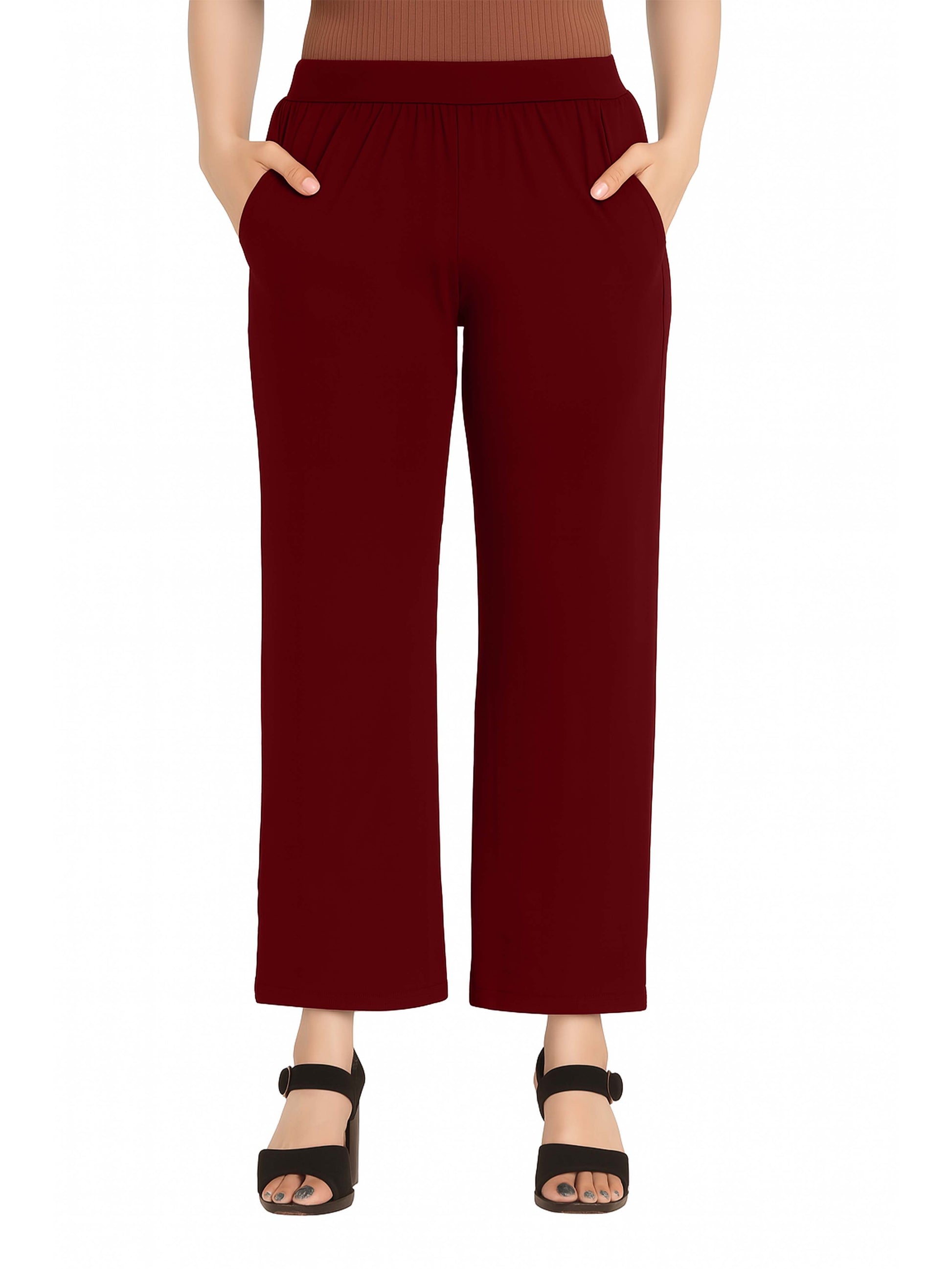 Redefine your ethnic essentials with the Women's Solid Maroon Relax Fit Pant. Made from a supple stretchable material, it features a naturally draped fit that feels effortless throughout the day. The solid maroon shade is adds depth to solids, prints, or minimal accessories. It’s a wardrobe win for errands, strolls, or family meetups. For those who value function in flowing form.