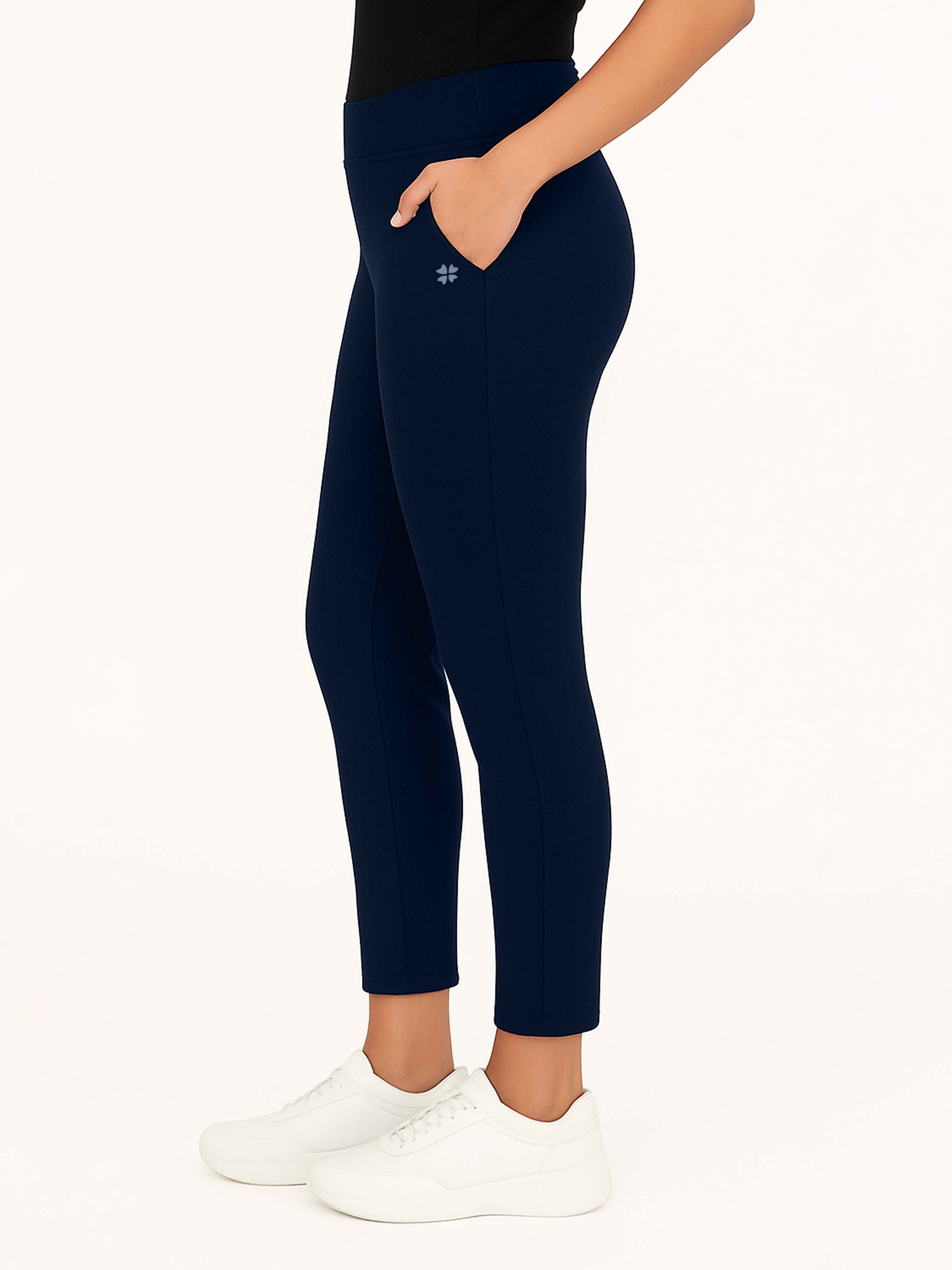 Refined and timeless, the navy solid elasticated lounger pant blends casual comfort with classic style. Designed with a soft, breathable fabric and a stretch waistband, these pants offer ease without sacrificing sophistication. The deep navy hue pairs beautifully with a range of colors, making it a versatile piece for lounging or light outings. With a flattering fit and relaxed feel, this pant suits every body type and every mood. Slip into this effortless staple for cozy weekends, quick errands, or relaxed travel days. Add subtle polish to your off-duty look with the dependable charm of navy.