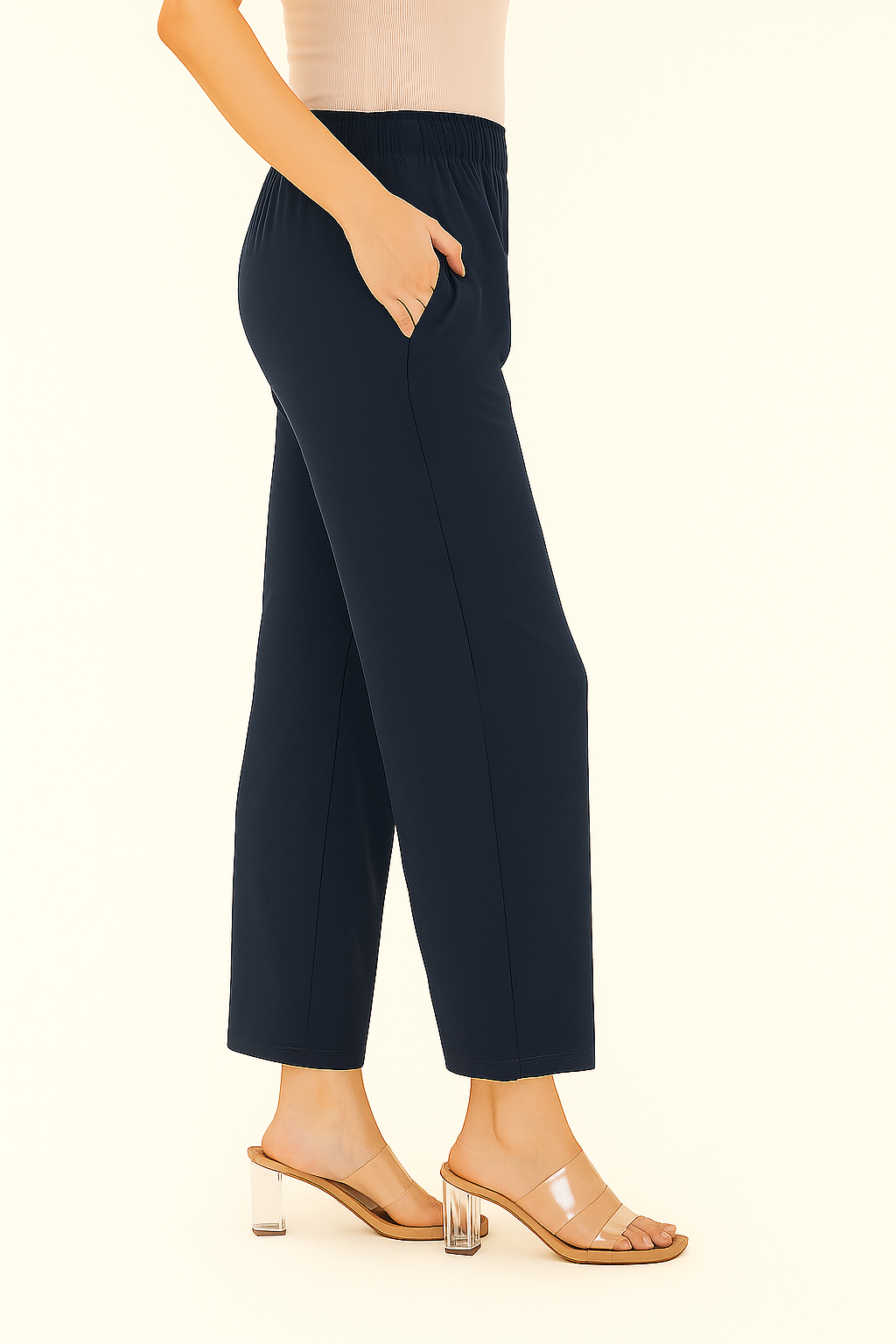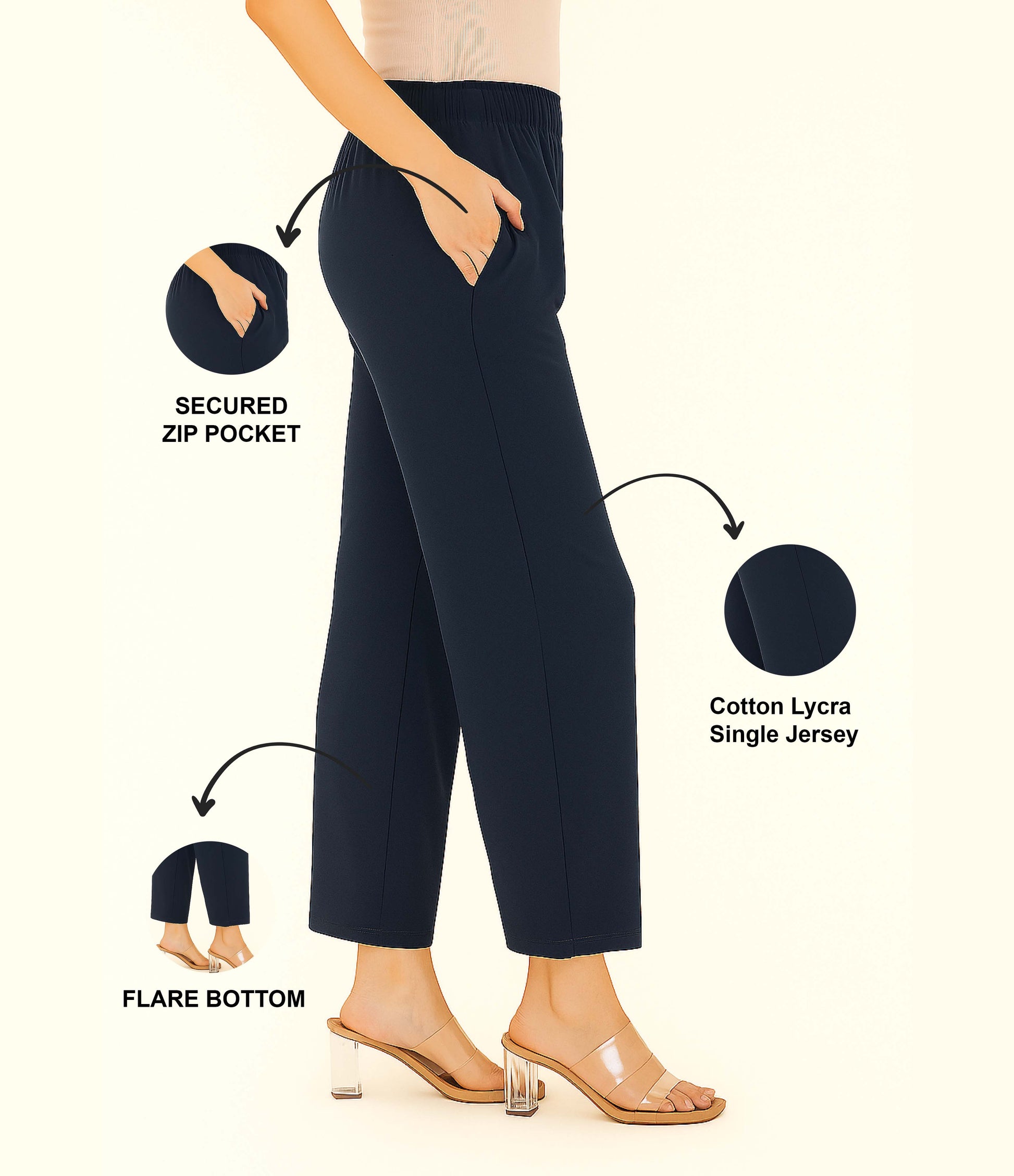 Refined and practical, the Women's Regular Fit Navy Flare Kurti Pant suits both festive occasions and casual wear. The rich navy shade brings elegance, while the soft, flowing silhouette adds movement and grace. It’s tailored to fit naturally at the waist and flare gently at the hem for flattering definition. This pant complements embroidered kurtas, printed tunics, or formal blouses. Easy to wear and easy to style, it blends traditional appeal with contemporary finesse for any event.