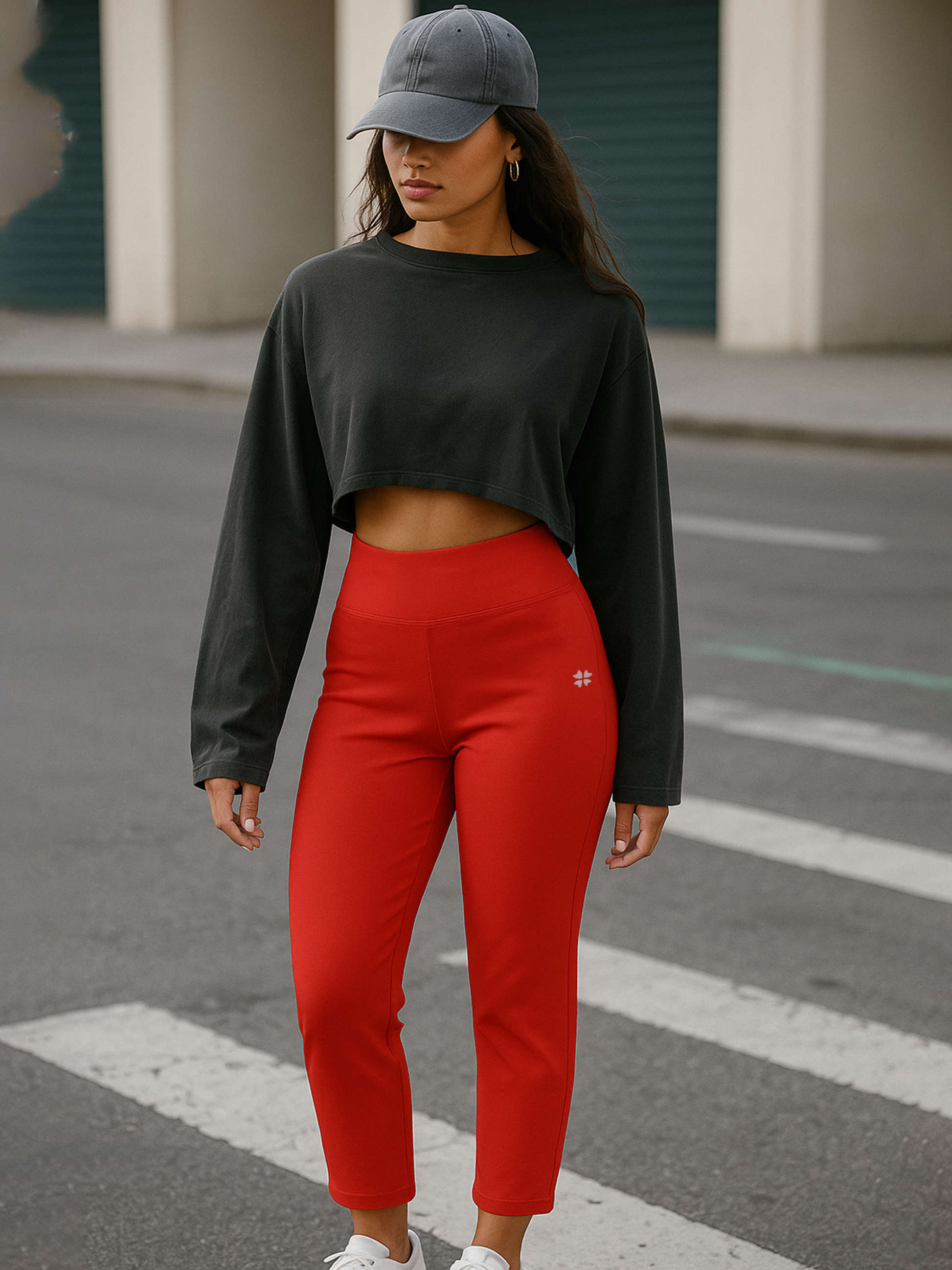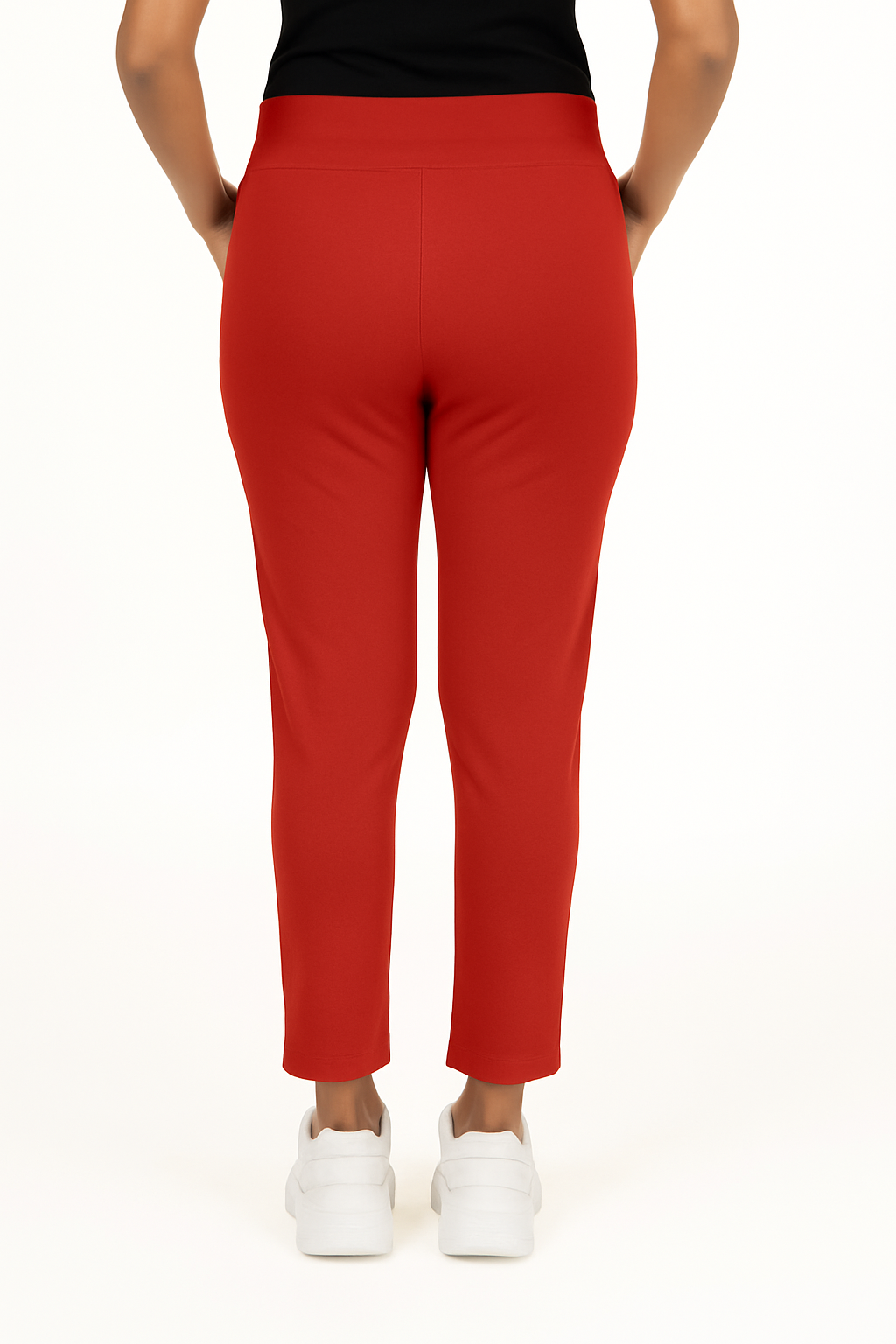 Turn heads in bold, beautiful red with our solid elasticated lounger pant. Designed to make a statement, these pants deliver a vibrant pop of color along with superior comfort. The soft, breathable fabric and stretchable waistband promise a secure and flattering fit for all-day wear. Ideal for lounging, errands, or relaxed meetups, the straight-leg design allows for easy movement. Pair with neutral tones or bold prints to express your style. This red pant adds flair to your casual wardrobe while maintaining comfort at its core. Embrace confident color and relaxed elegance with this essential loungewear staple.