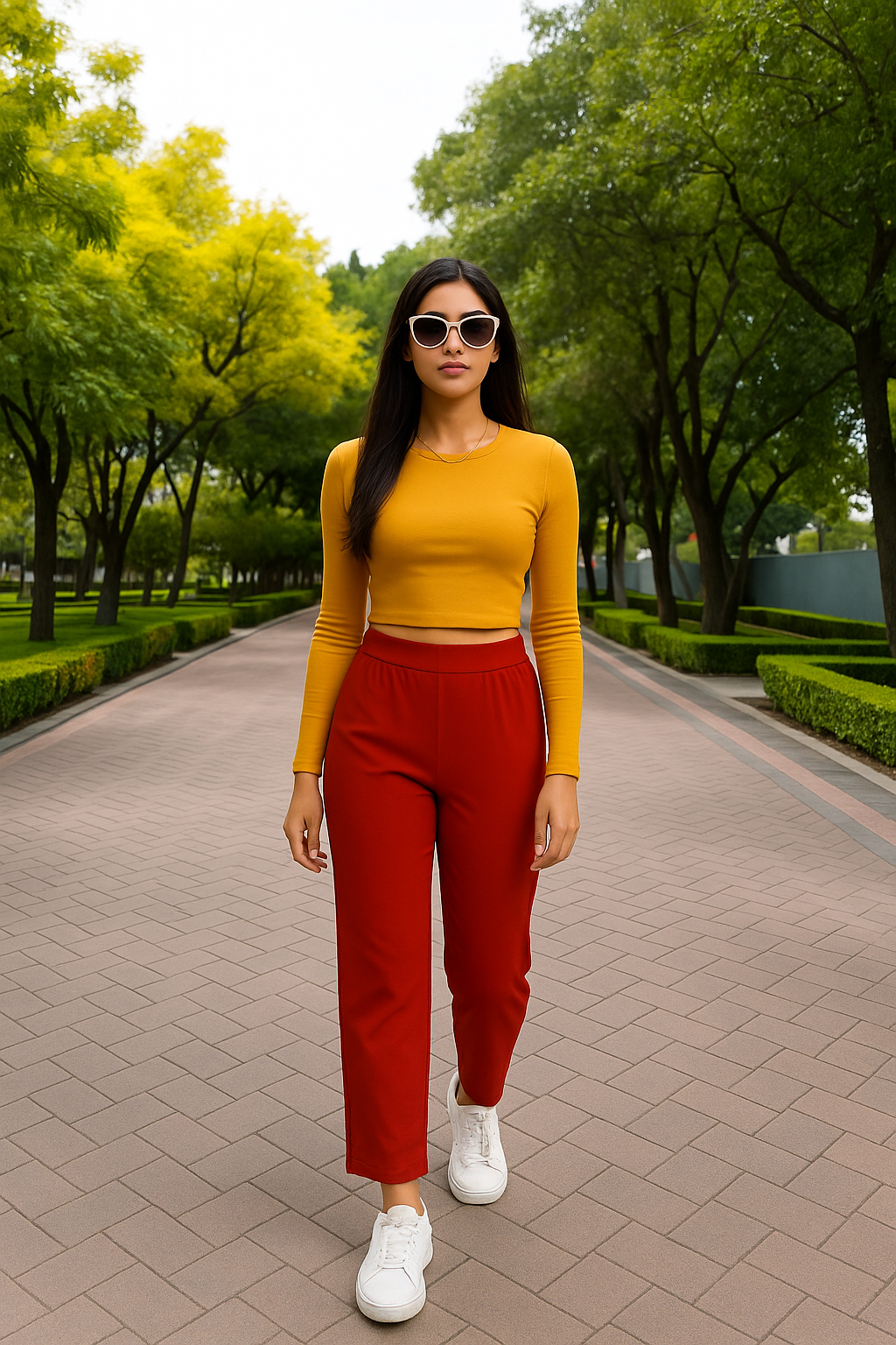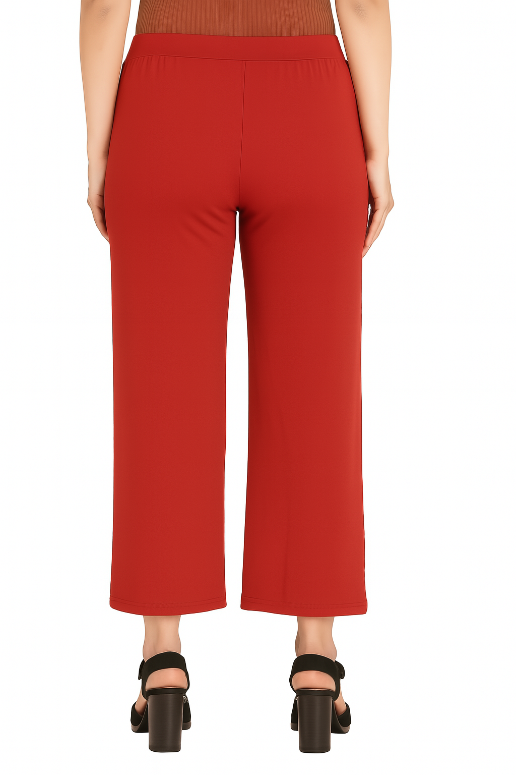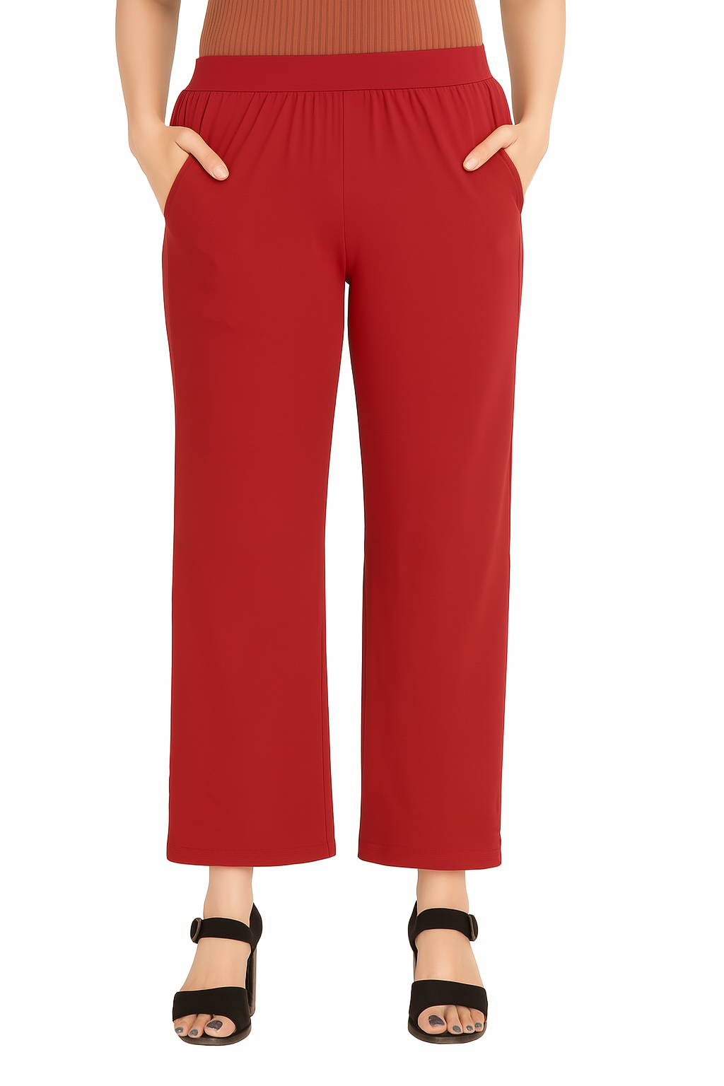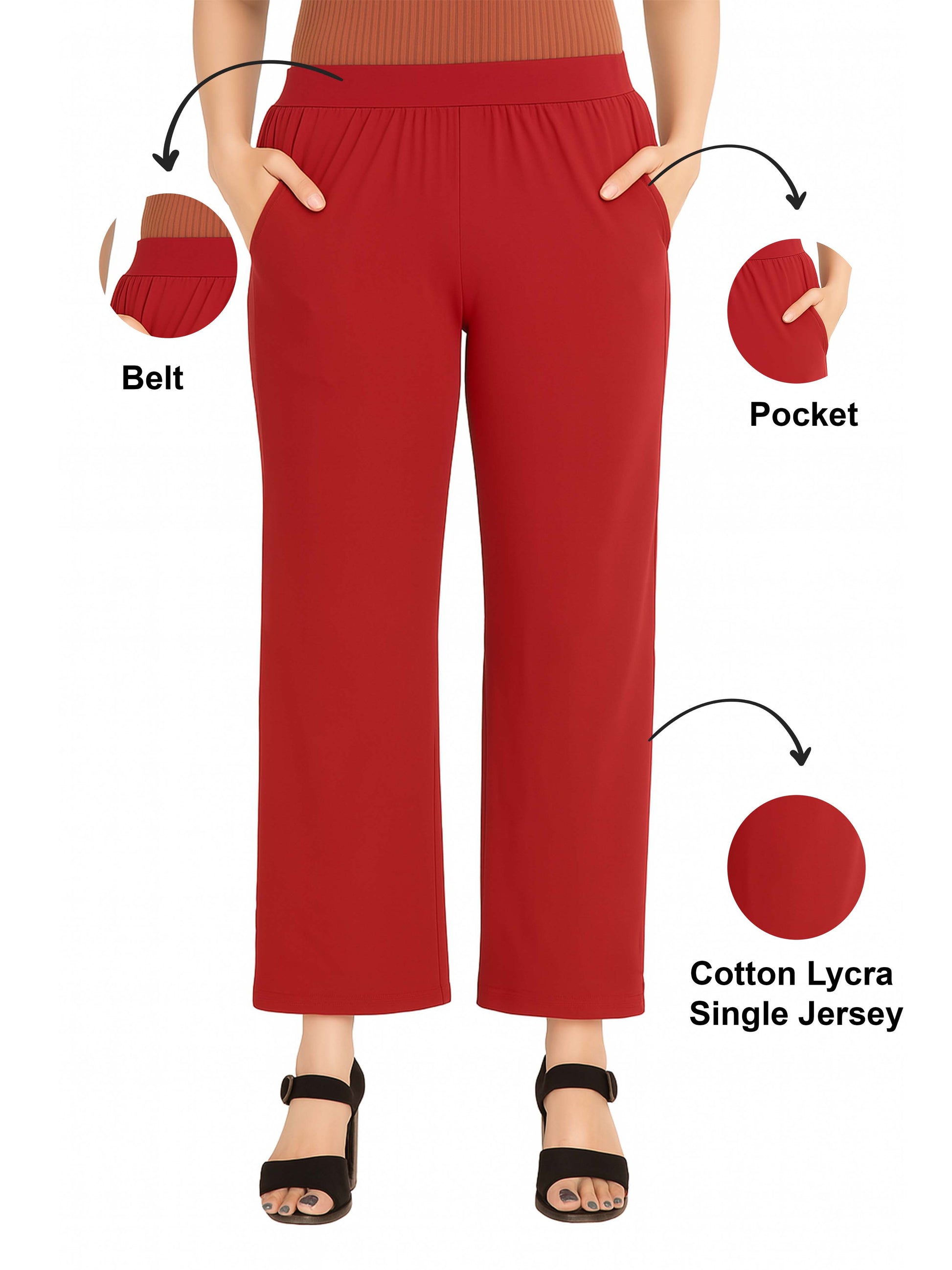 Step into effortless ease with the Women's Solid Red Relax Fit Pant. Made from a soft-woven Cotton lycra, it features a easygoing tapered shape that feels effortless throughout the day. The solid red shade is pairs beautifully with bright tones or tonal layers. It’s suits every setting from relaxed weekends to office hours. A quietly confident addition to your rotation.