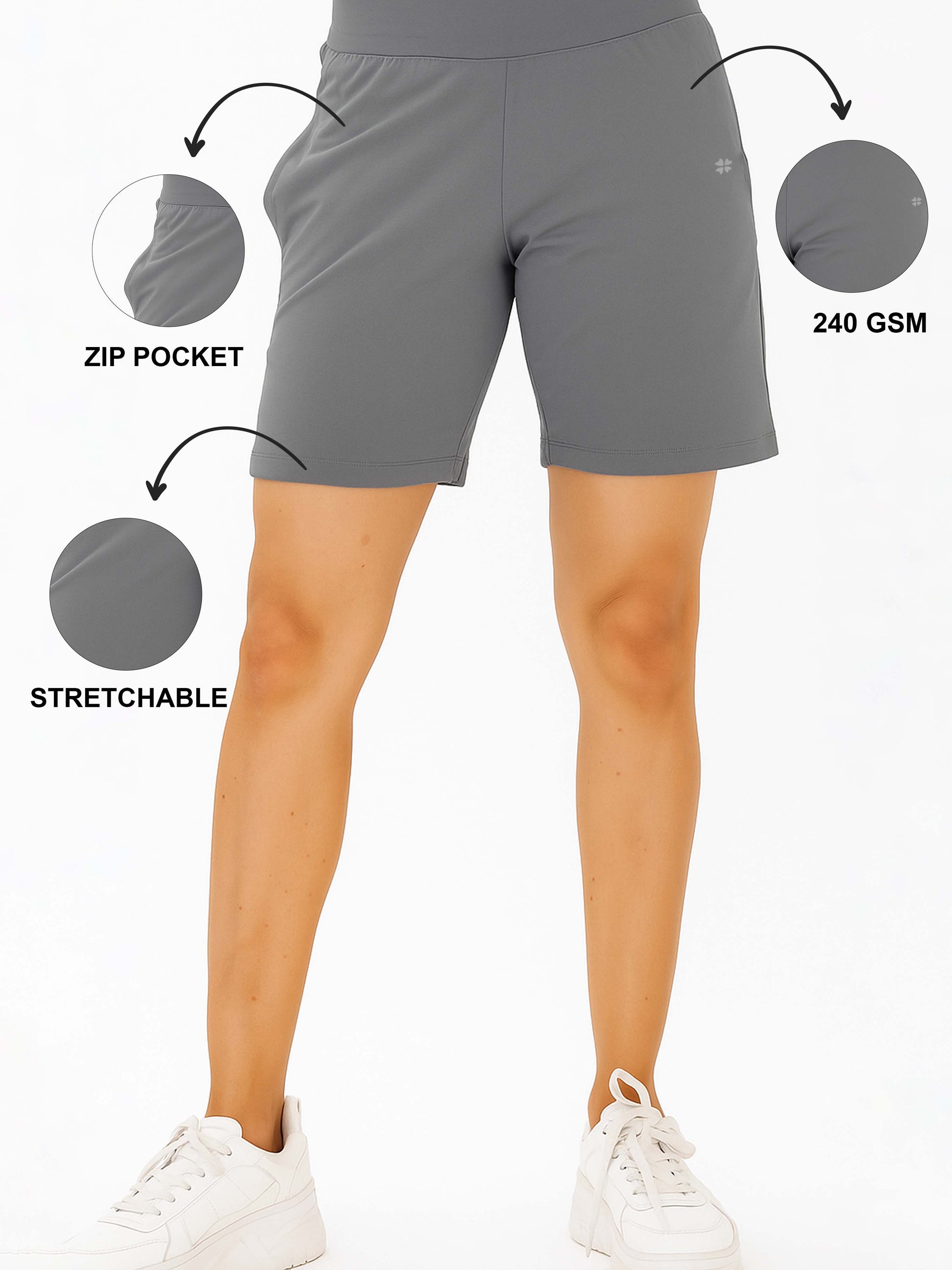 Steel Grey Lycra shorts offer a modern tone suited for urban aesthetics. They coordinate with edgy or soft styles alike and transition effortlessly from gym sessions to casual citywear. Delivering neutral balance without appearing plain, they embody cool, effortless style. A great choice for those who prefer sleek minimalism with everyday functionality and a sharp visual edge.