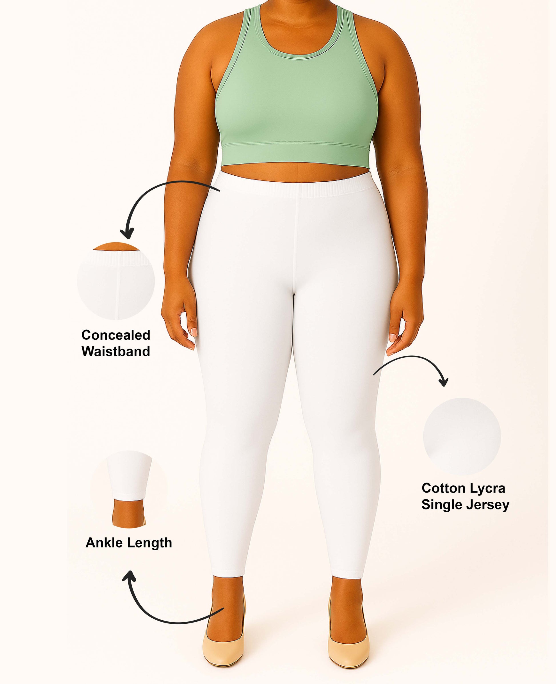 Add timeless elegance to your wardrobe with these white ankle-length leggings. Crafted from stretchable fabric, they provide a perfect, flattering fit while offering maximum comfort for all-day wear. The crisp white color allows for easy pairing with both bright and neutral tones, making these leggings versatile for various occasions. Whether worn under a long tunic or paired with casual tees, these leggings offer both style and functionality. A must-have essential, they complement your daily outfits, ensuring you look polished and feel comfortable from day to night.