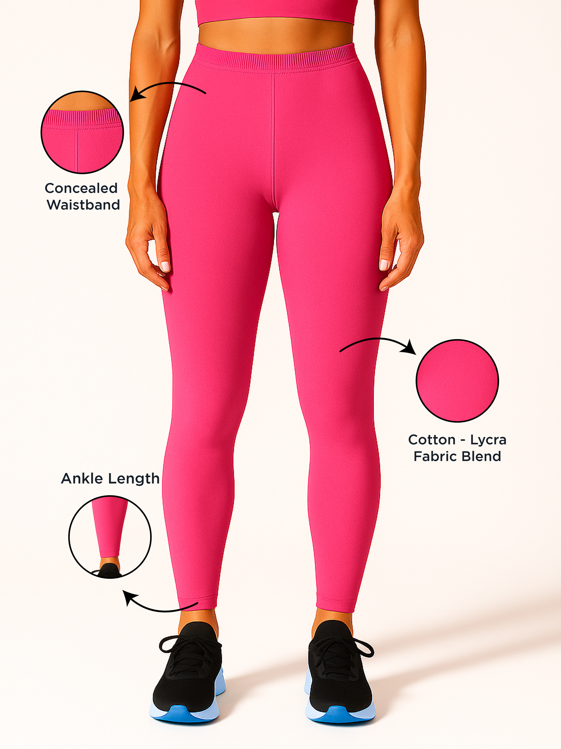 Make a vibrant statement with our ankle-length leggings in Young Fuchsia a bold and lively magenta-pink that radiates youthful charm. These leggings are crafted for women who love expressive color and need comfort that lasts all day. The high-stretch fabric adapts to your movement, perfect for active days or relaxed nights in. Young Fuchsia pairs brilliantly with black, white, or even denim for a fun, fashion-forward twist. A supportive waistband ensures a secure, flattering fit, while the soft material keeps you feeling confident and cozy. Whether you're at a music festival or catching up with friends, these leggings make your personality shine. Let your style bloom with this dynamic, fresh shade that's full of flair.